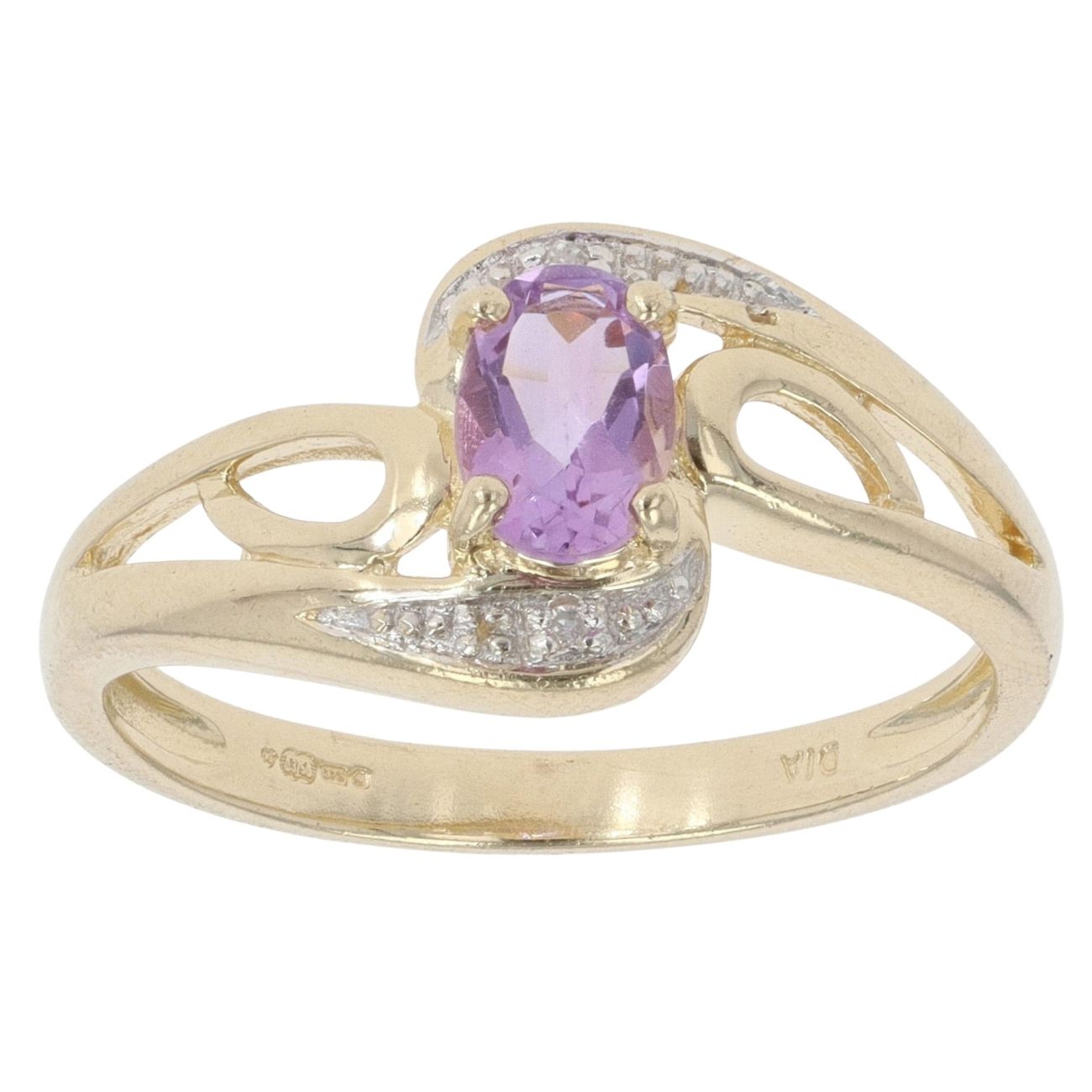 9ct Yellow And White Gold 0.02ct Diamond And Amethyst Ring