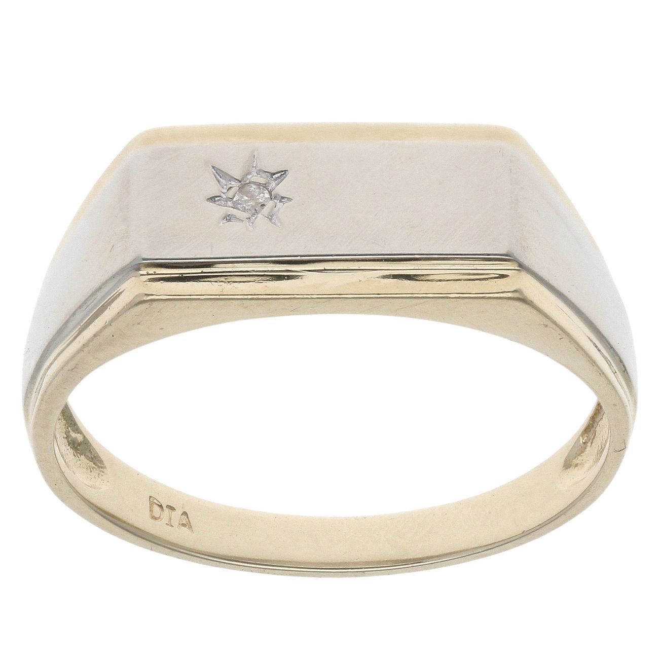 9ct Yellow And White Gold 0.02ct Diamond Signet Ring