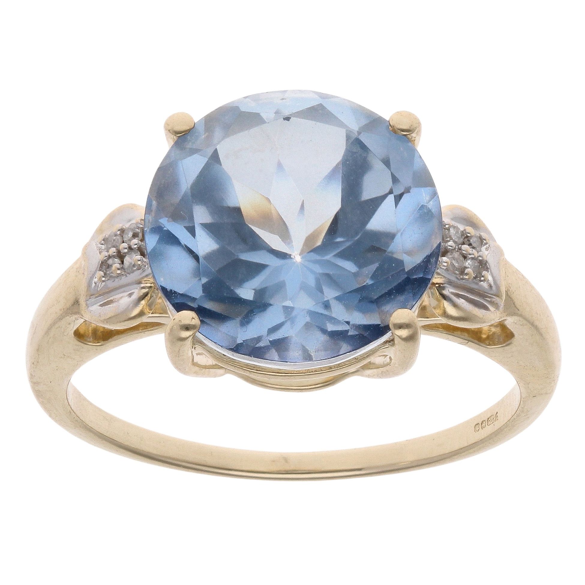 9ct Yellow And White Gold 0.03ct Diamond And Blue Gemstone Ring