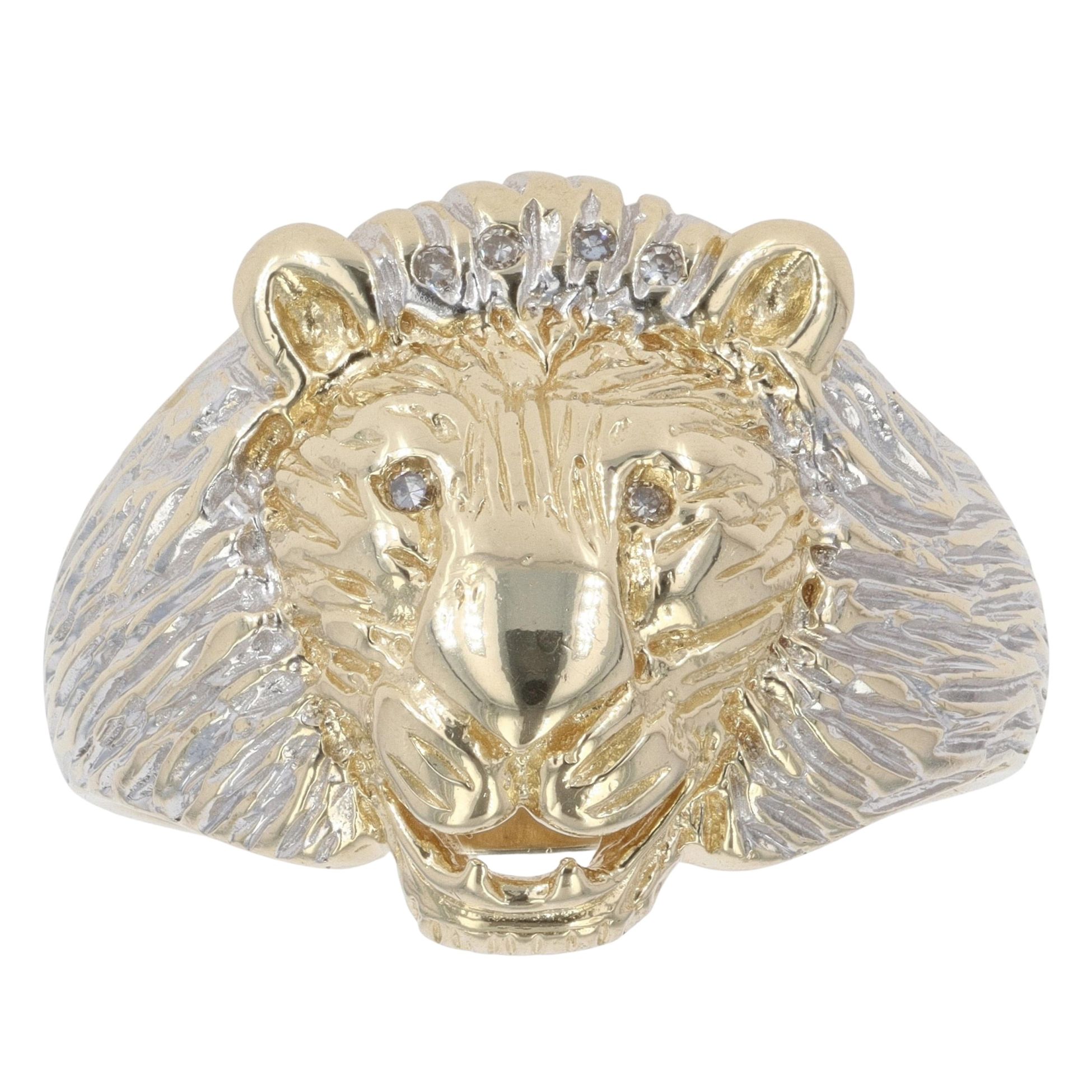 9ct Yellow and White Gold 0.04ct Diamond Lion Ring
