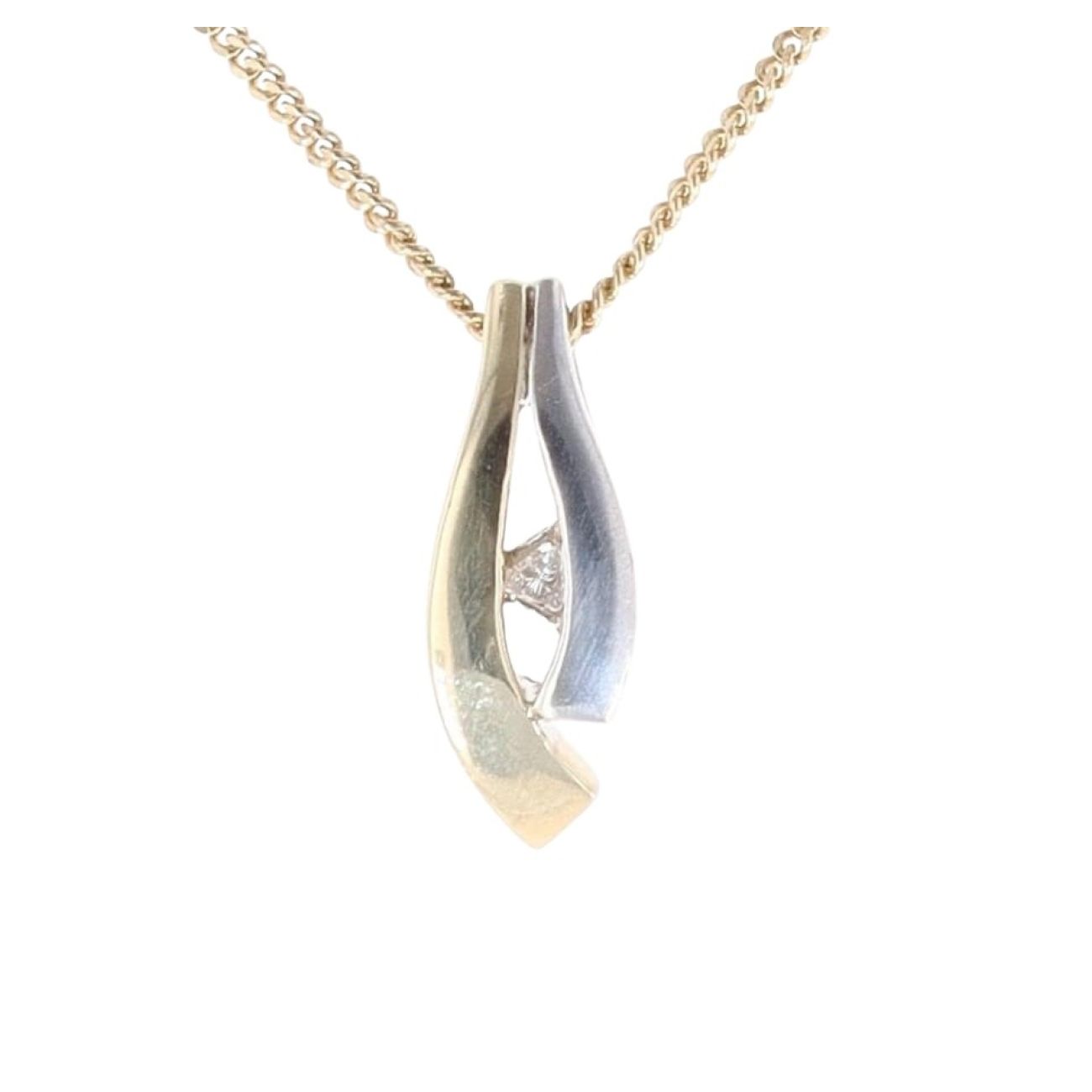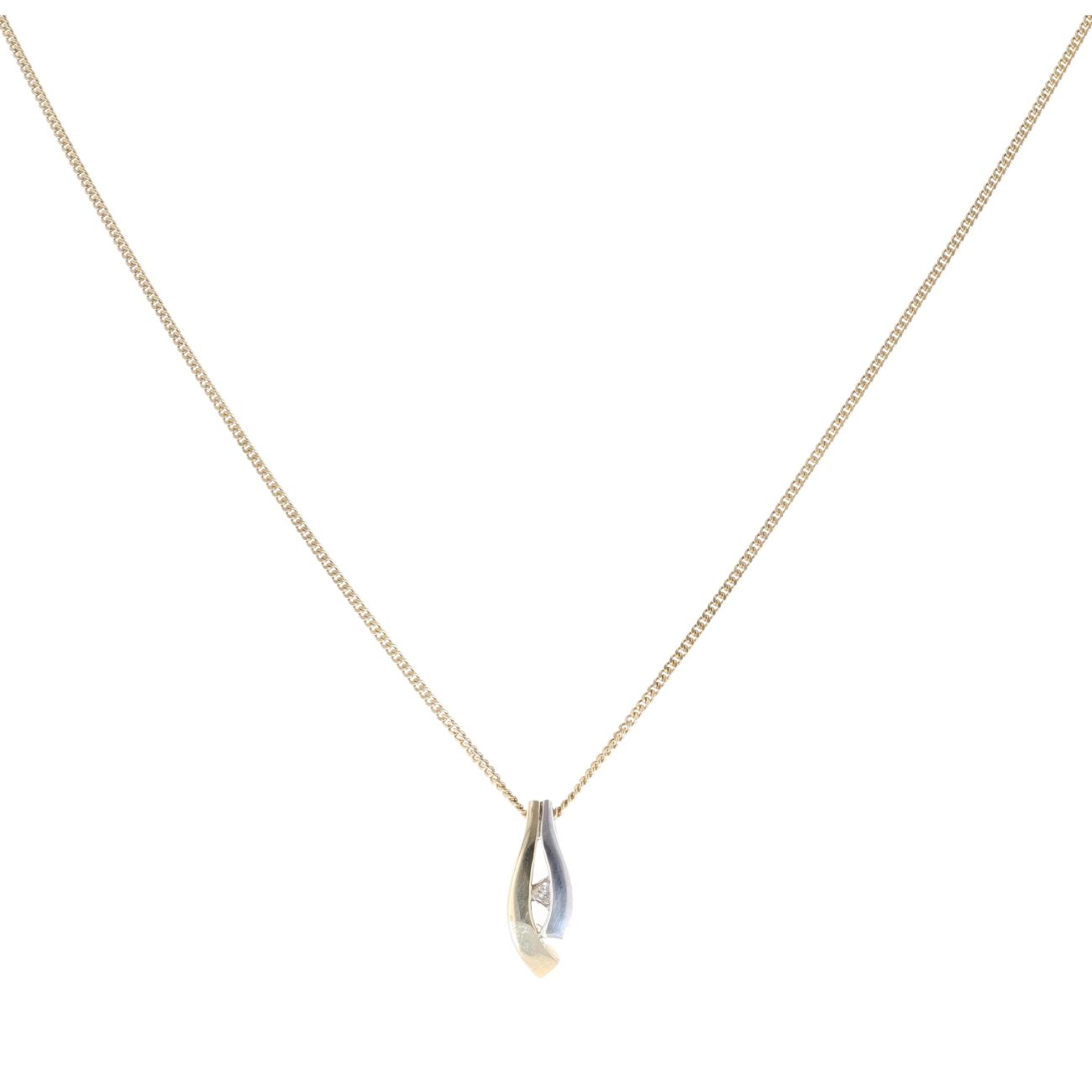 9ct Yellow and White Gold 0.05ct Diamond Pendant and Chain 18"