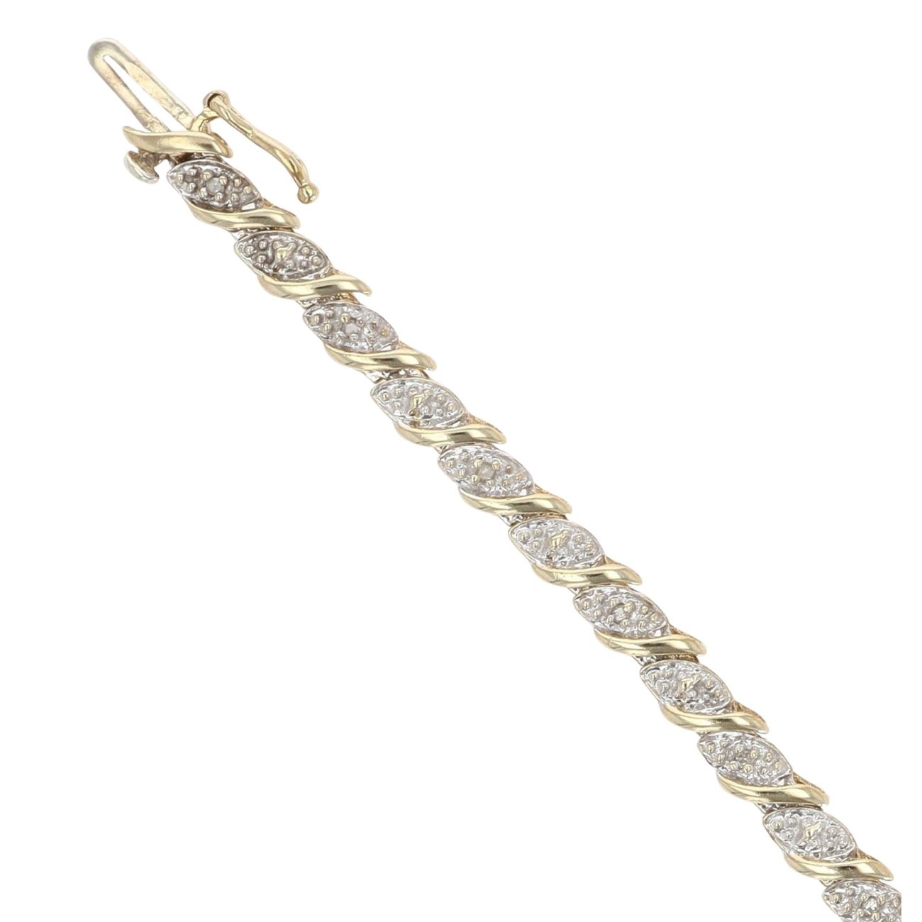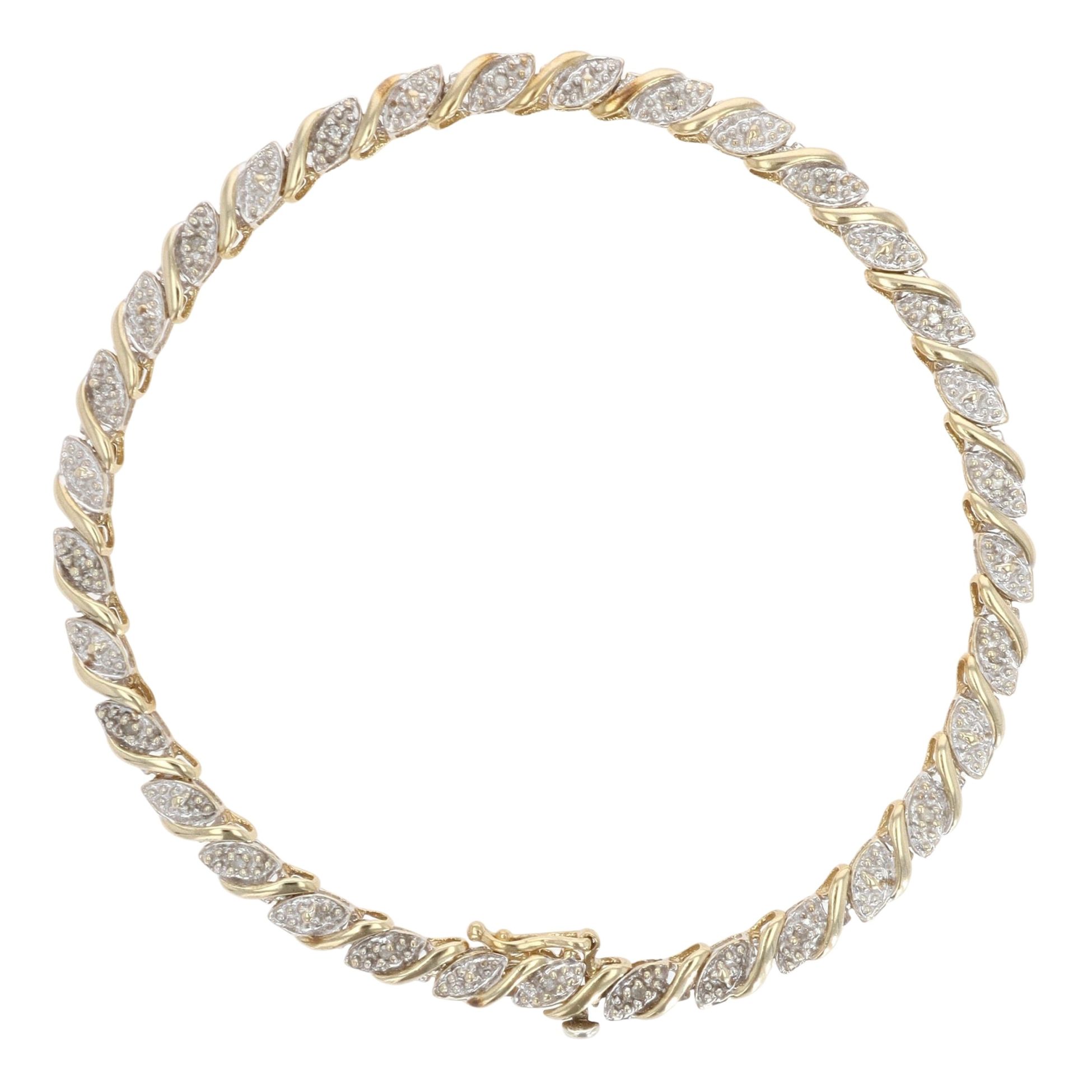 9ct Yellow And White Gold 0.10ct Brilliant Cut Diamond Bracelet 7.5"
