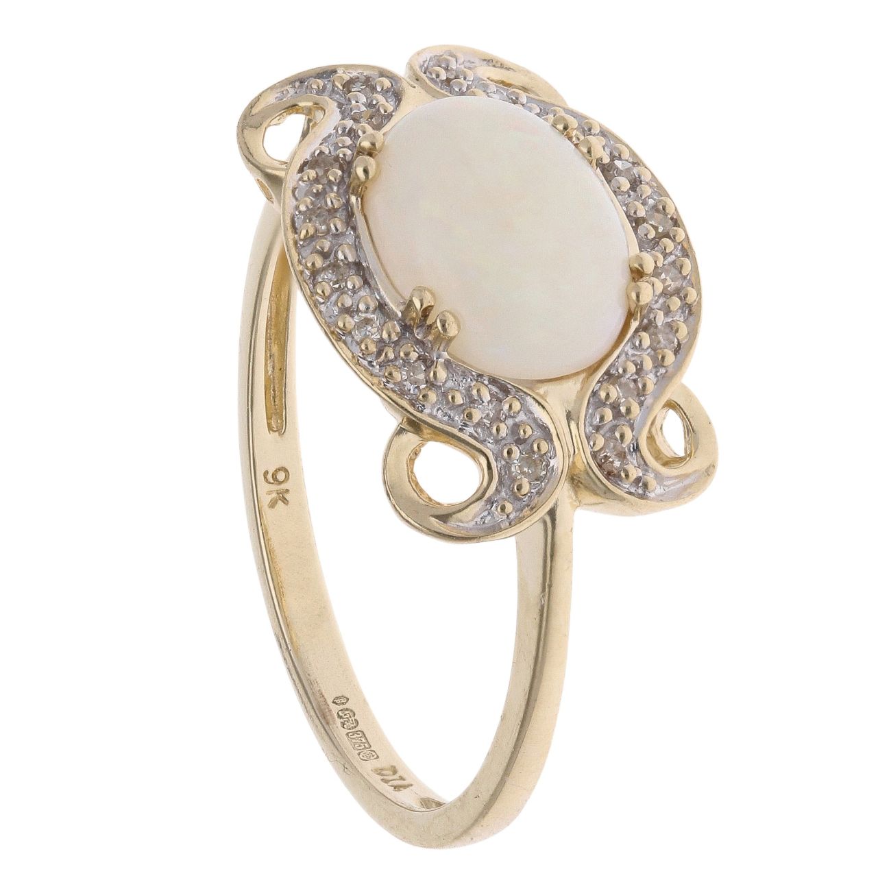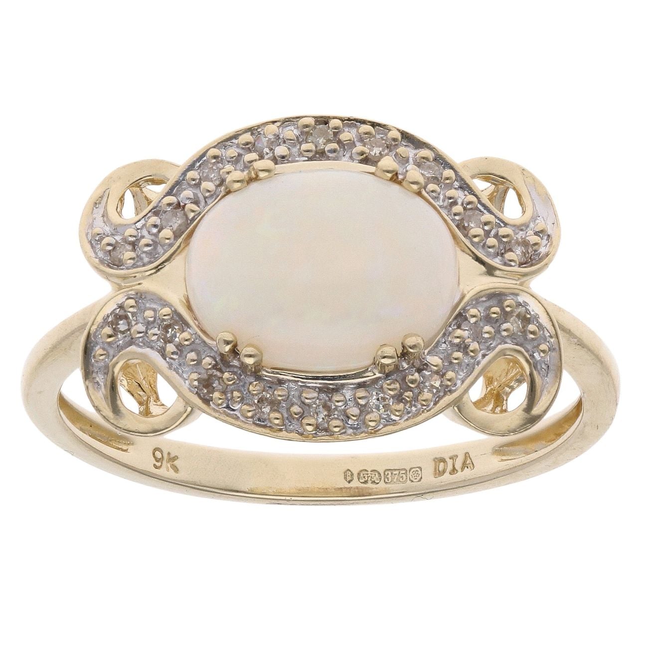 9ct Yellow And White Gold 0.10ct Diamond And Opal Cluster Ring