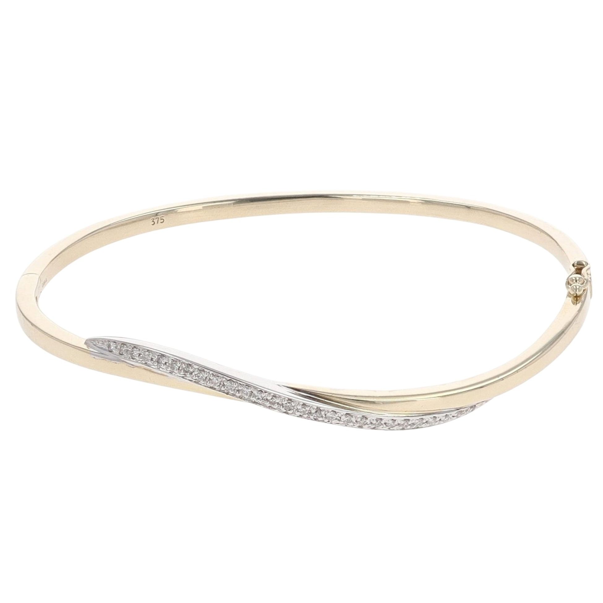 9ct Yellow And White Gold 0.15ct Brilliant Cut Diamond Bangle