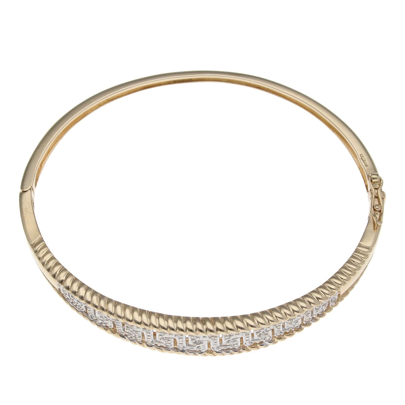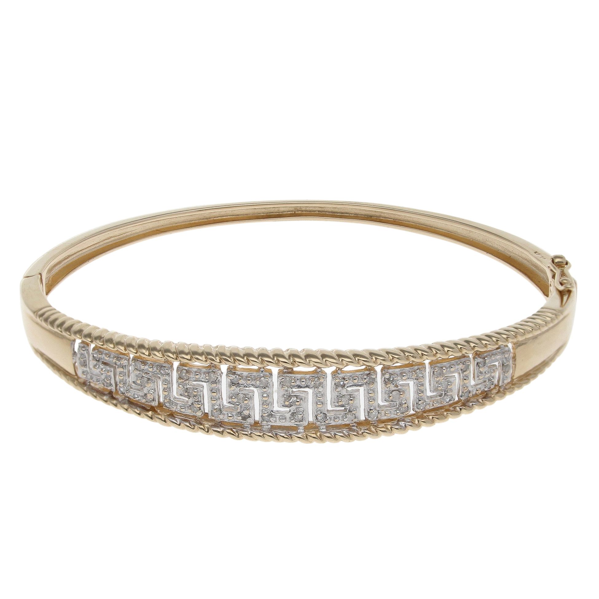 9ct Yellow And White Gold 0.25ct Brilliant Cut Diamond Greek Key Bangle