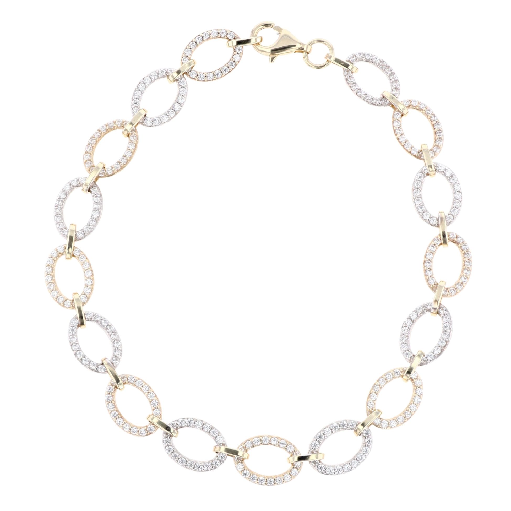 9ct Yellow And White Gold 7.5" Cubic Zirconia Stone Set Bracelet