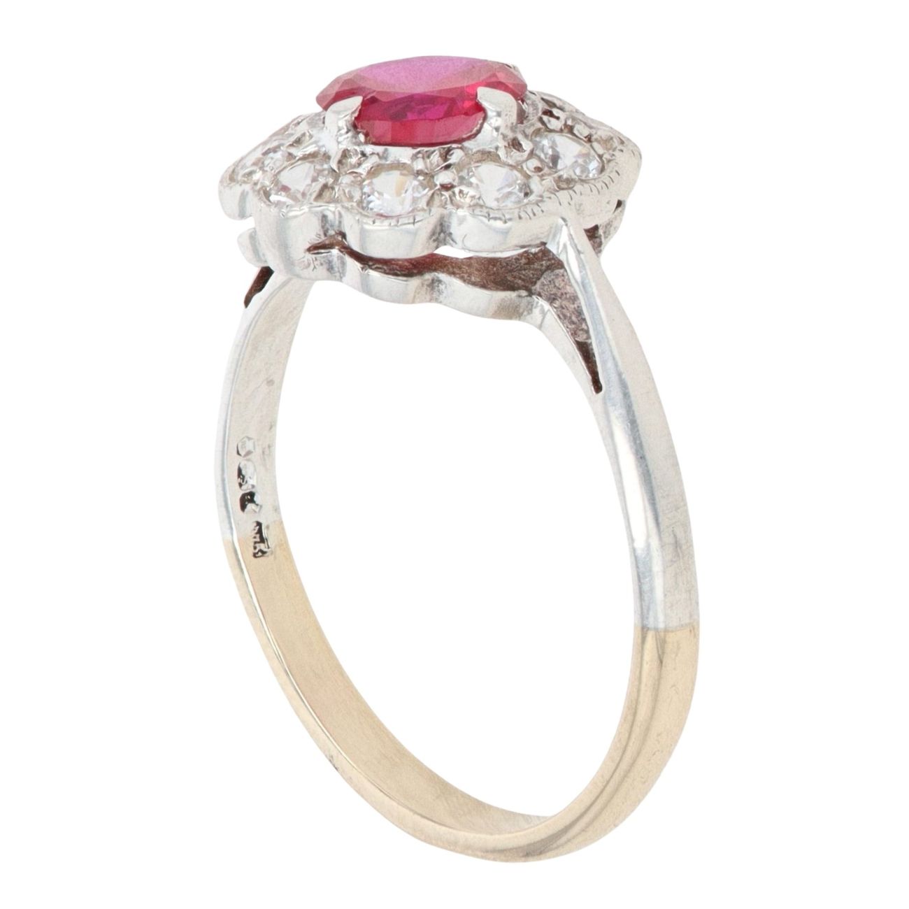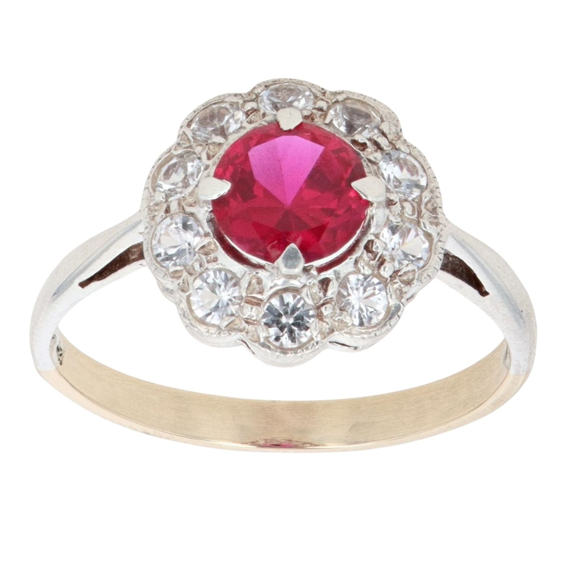 9ct Yellow and White Gold Cubic Zirconia and Ruby Cluster Ring