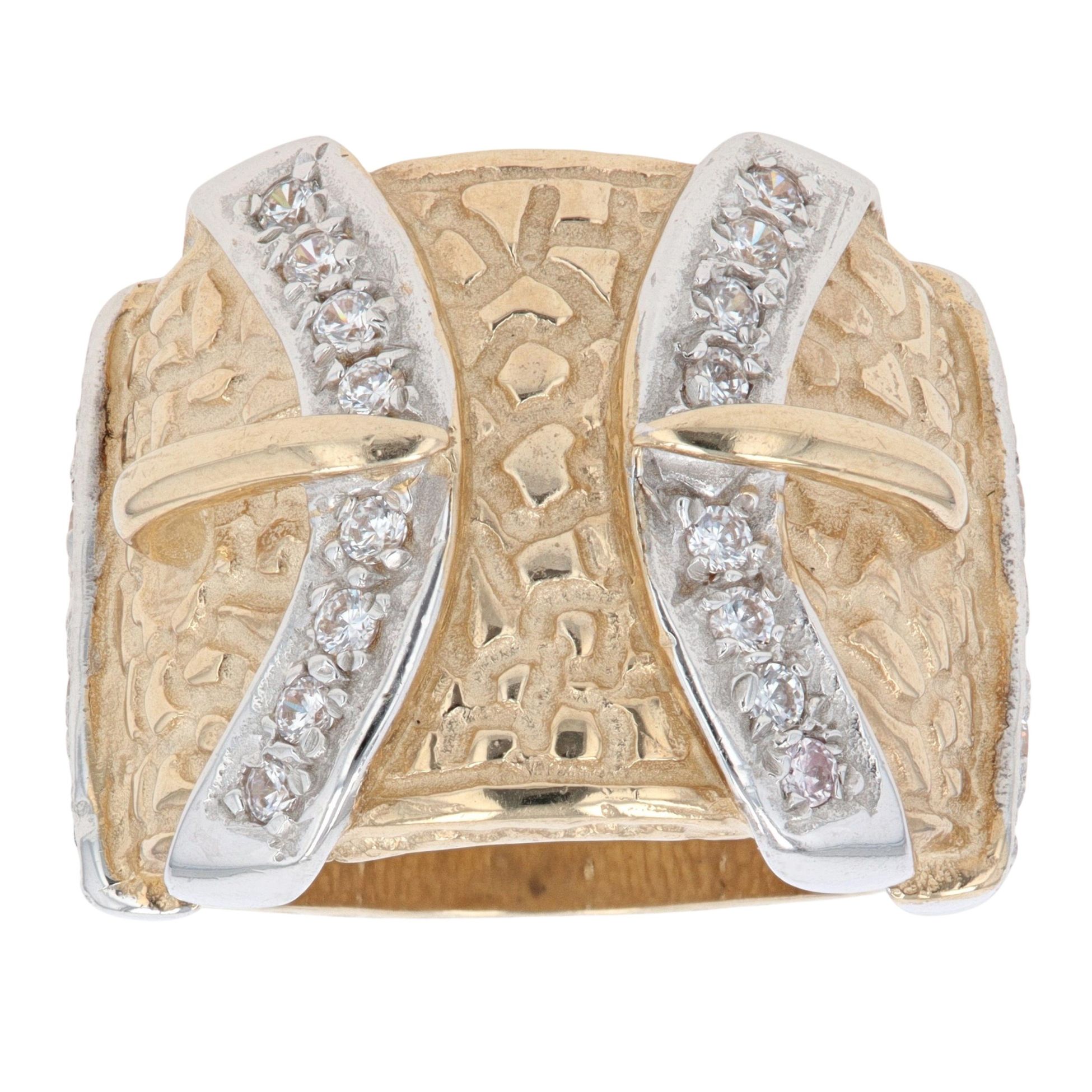 9ct Yellow And White Gold Cubic Zirconia Double Buckle Ring