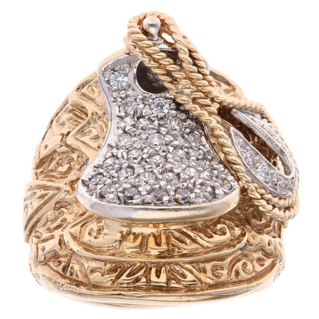 9ct Yellow and White Gold Cubic Zirconia Saddle Ring