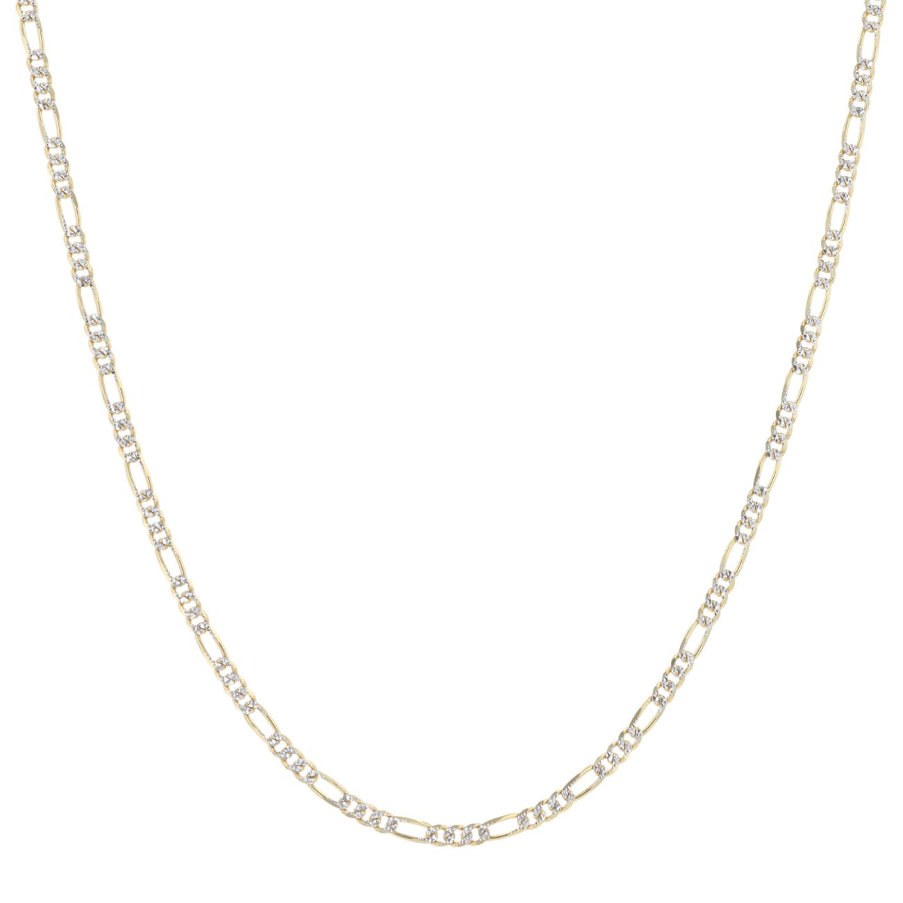 9ct Yellow and White Gold Diamond Cut Figaro Chain 20"