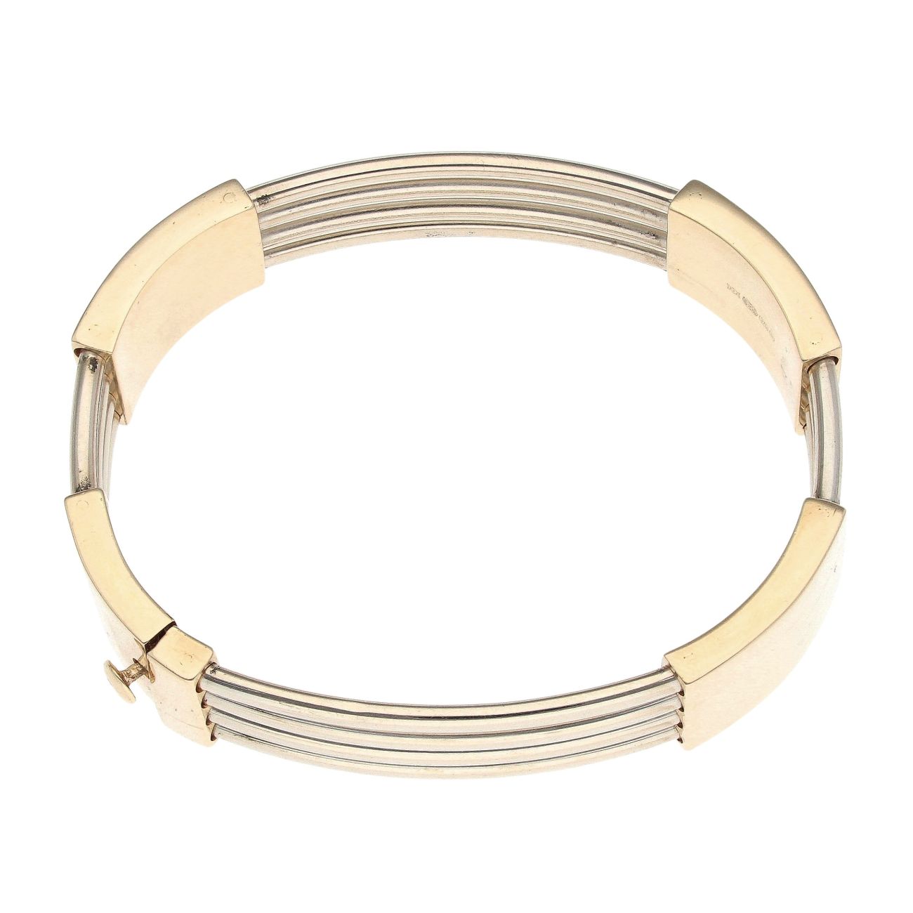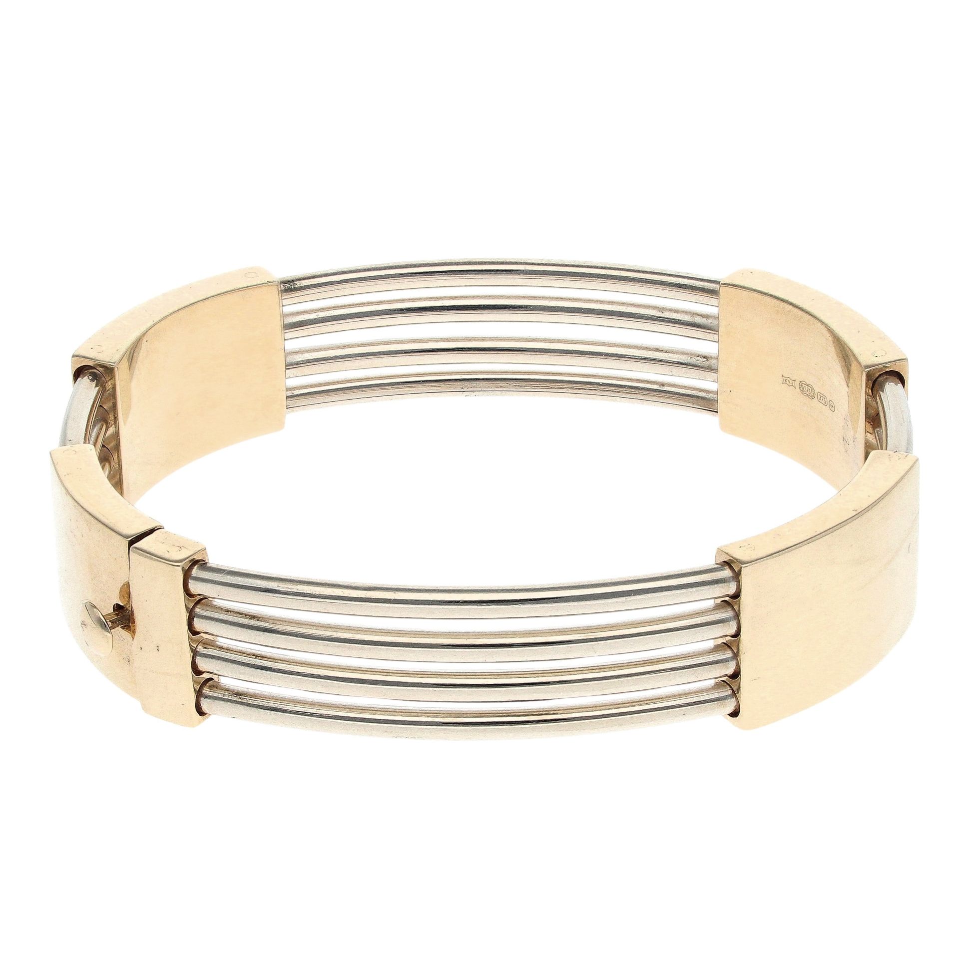 9ct Yellow and White Gold Four Row Hinged Bangle