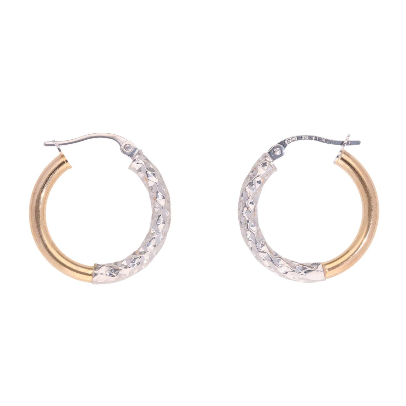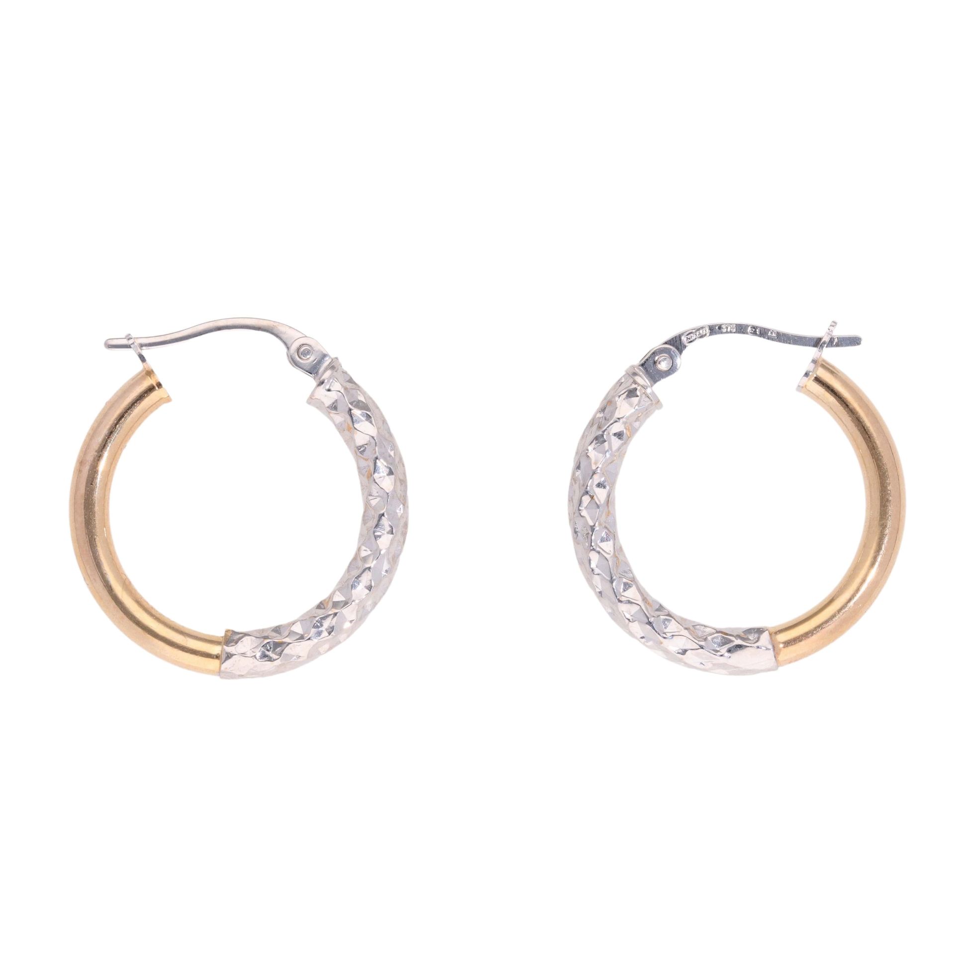 9ct Yellow And White Gold Half Textured Hoop Earrings