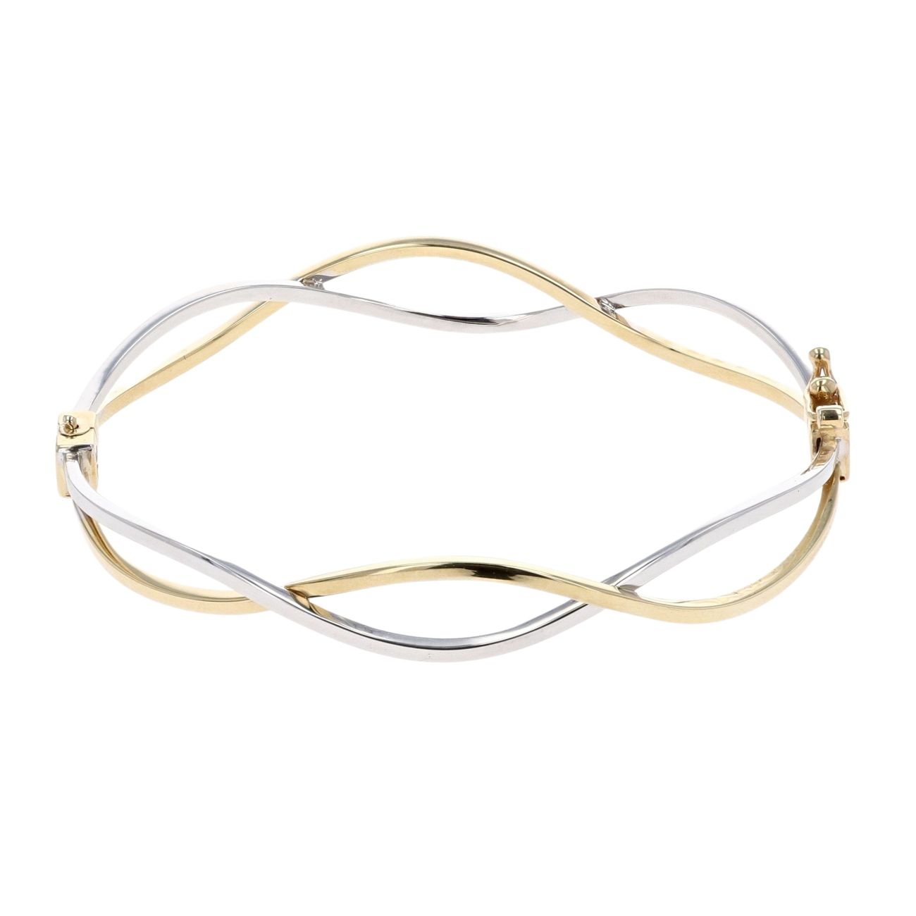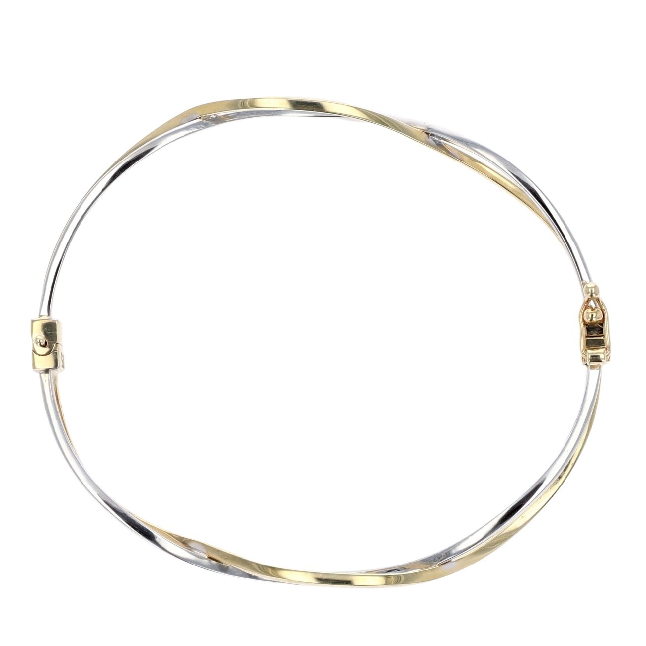 9ct Yellow and White Gold Hinged Twisted Bangle