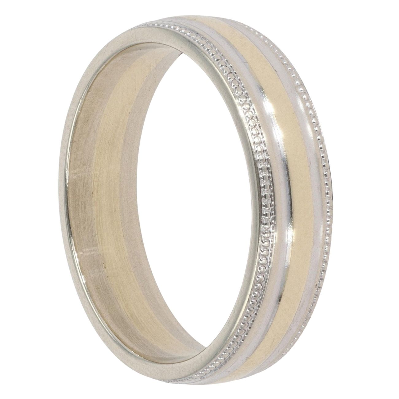 9ct Yellow and White Gold Milgrain Wedding Band 4.9mm