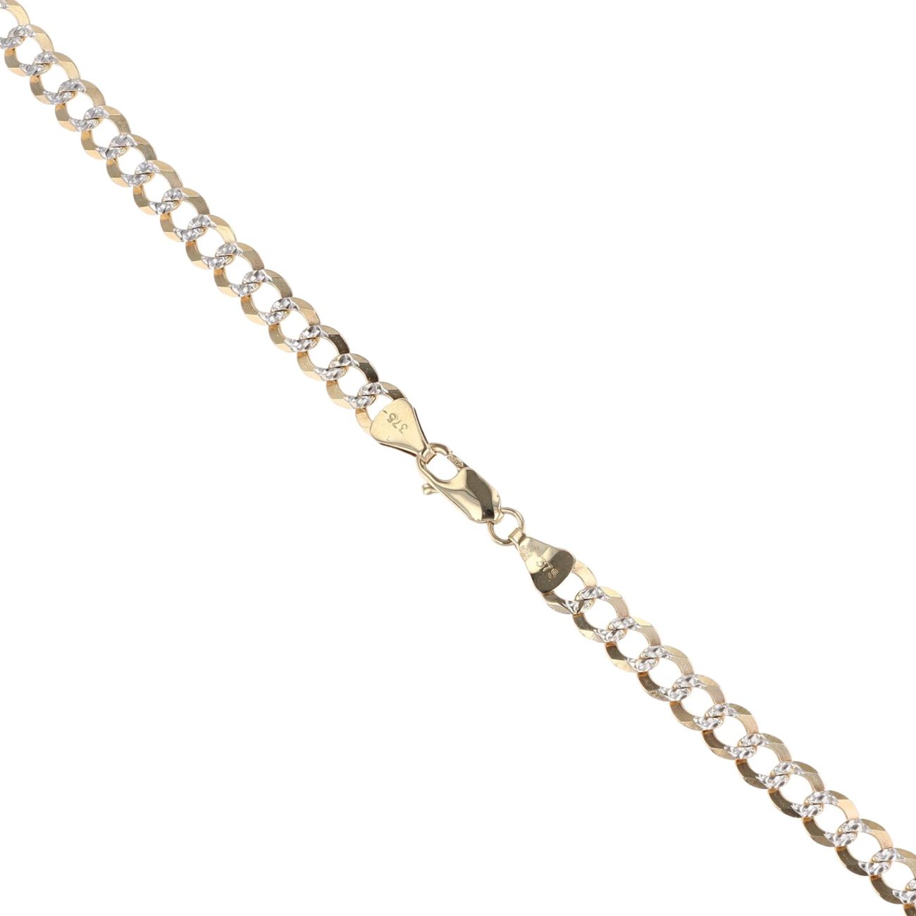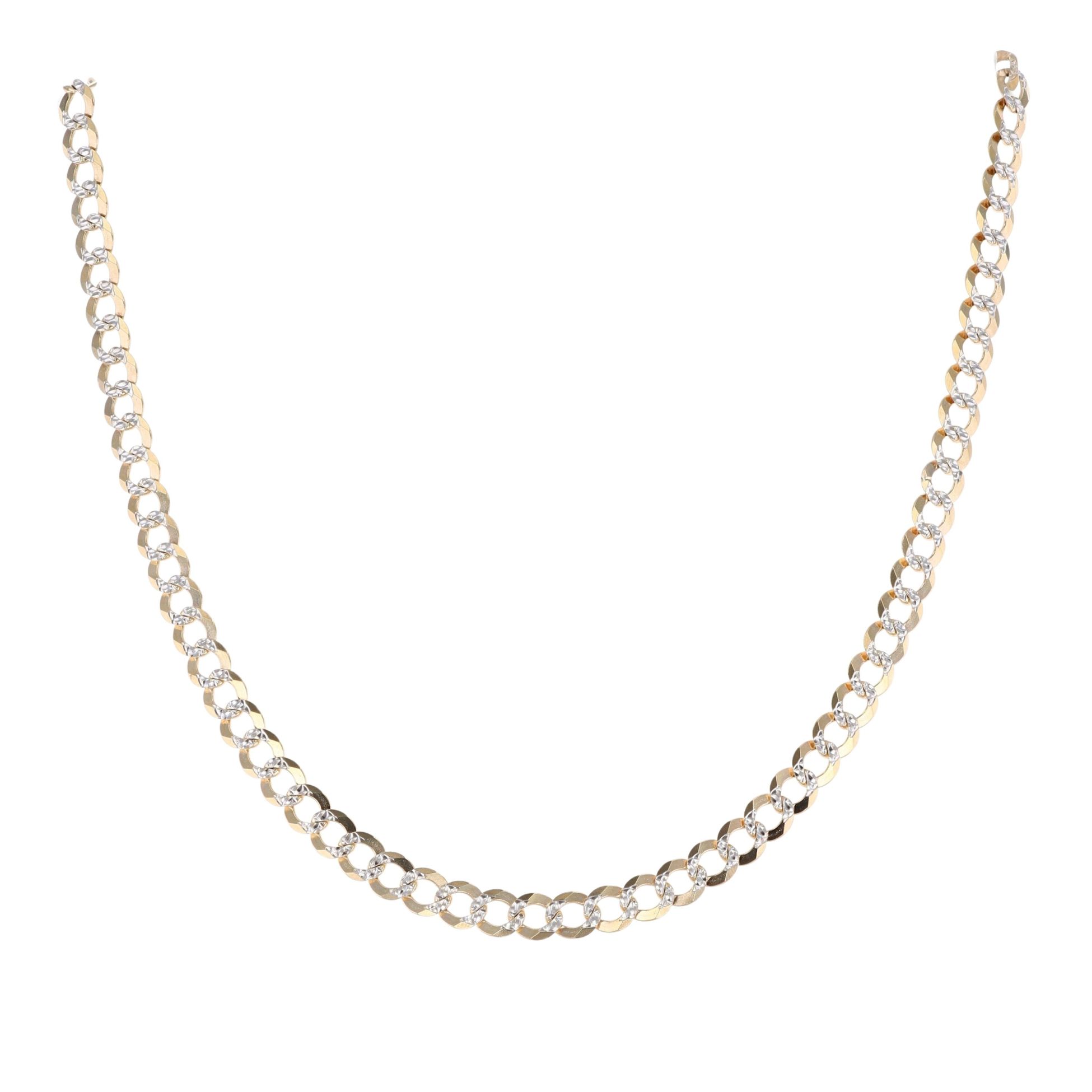 9ct Yellow And White Gold Patterned Curb Chain 16"