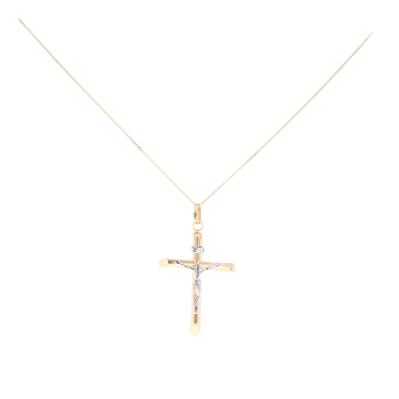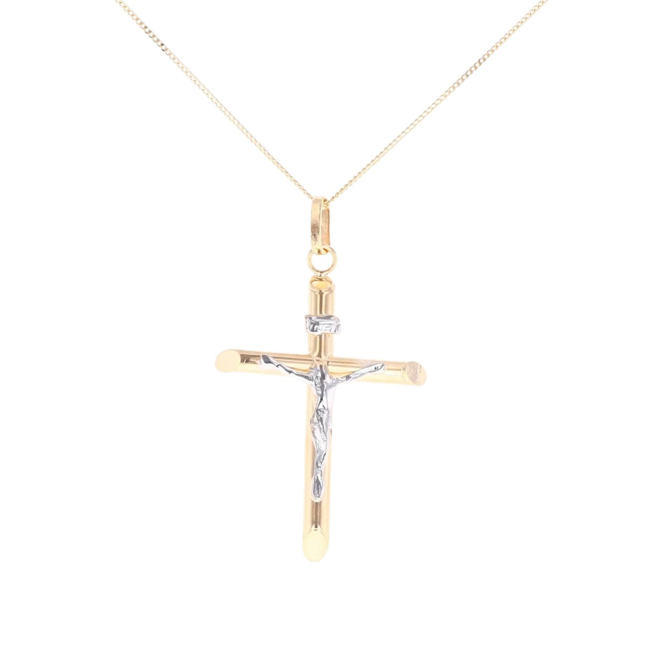 9ct Yellow And White Gold Plain Crucifix Pendant And Chain 18"