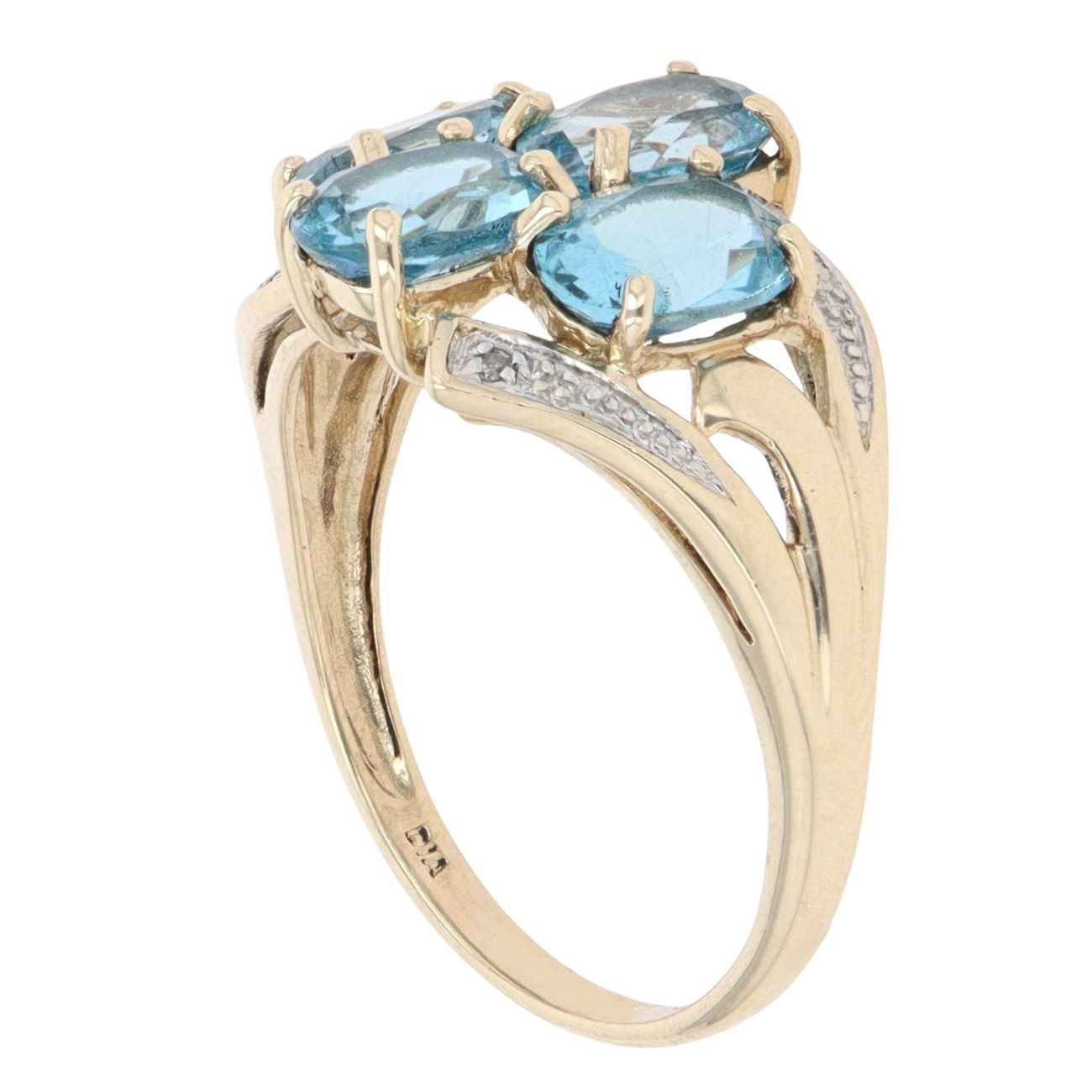 9ct Yellow Gold 0.01ct Diamond And Blue Topaz Cluster Ring