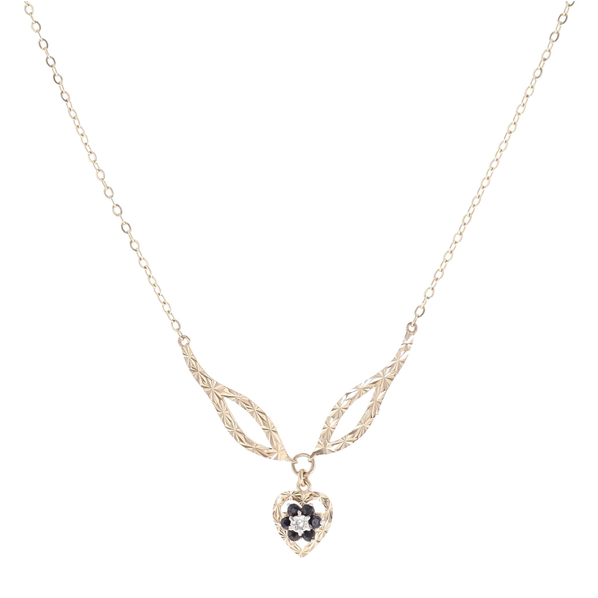 9ct Yellow Gold 0.01ct Diamond and Sapphire Cluster Pendant and Chain 16"