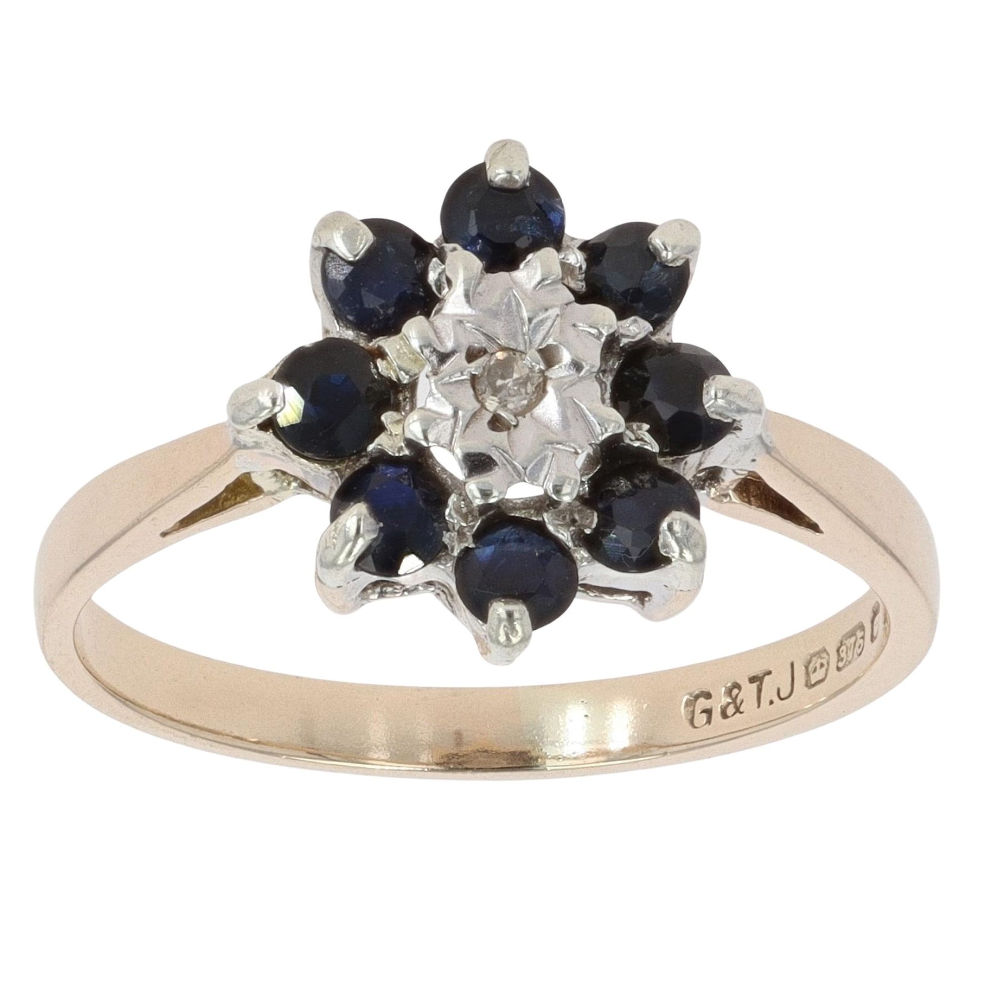 9ct Yellow Gold 0.01ct Diamond and Sapphire Cluster Ring