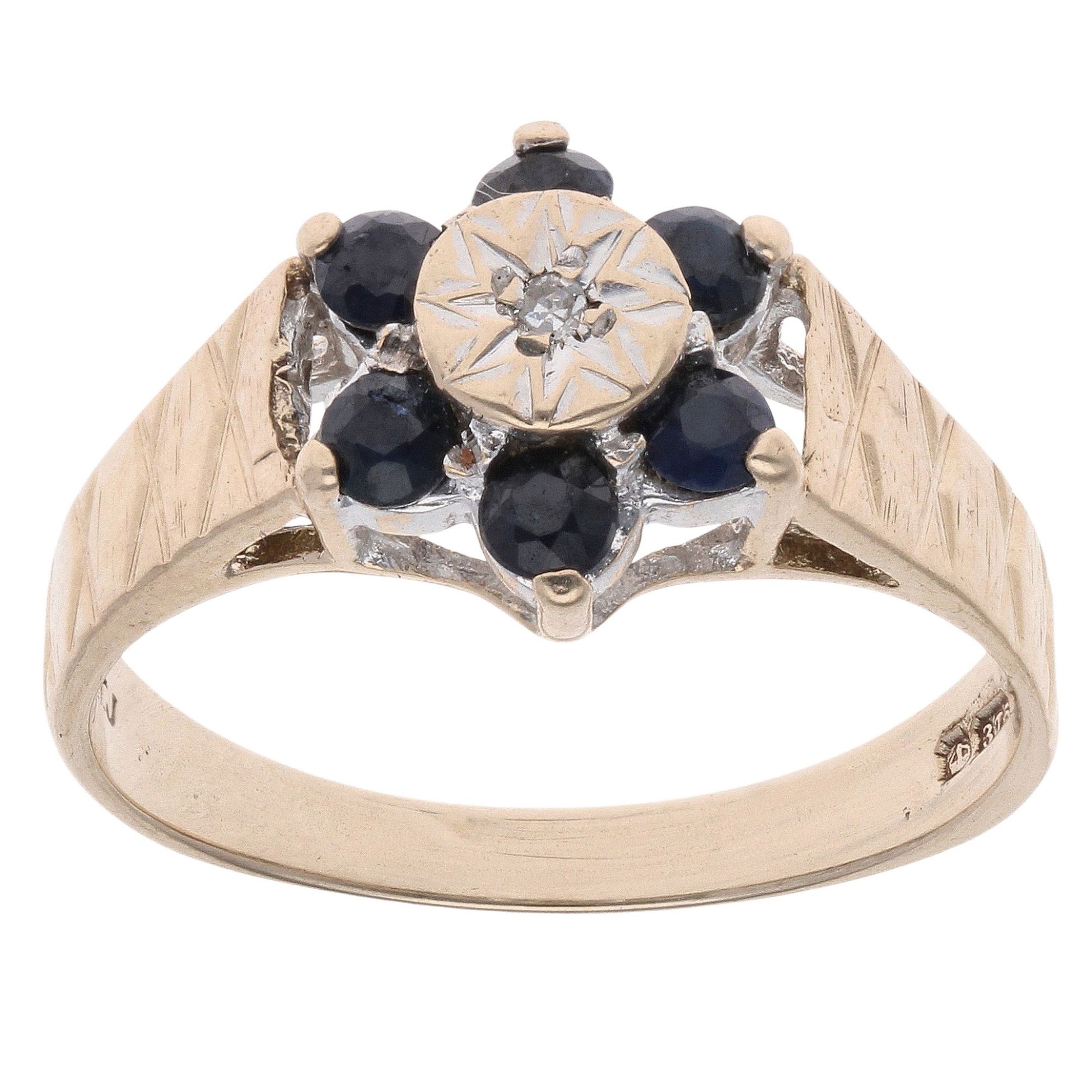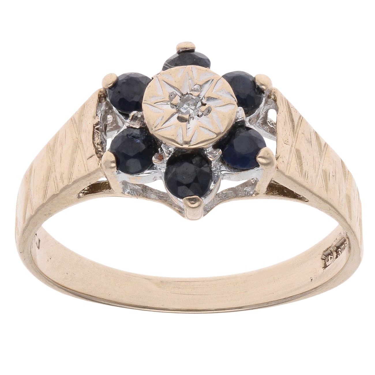 9ct Yellow Gold 0.01ct Diamond And Sapphire Cluster Ring