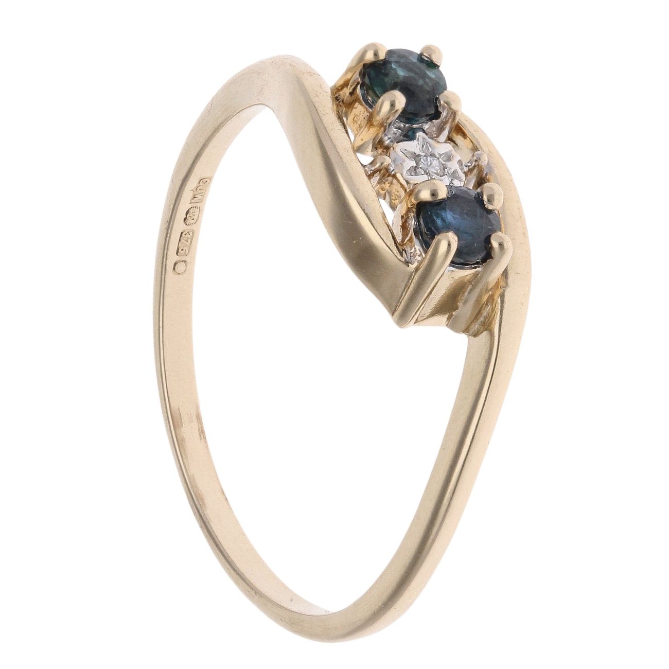 9ct Yellow Gold 0.01ct Diamond And Sapphire Trilogy Ring