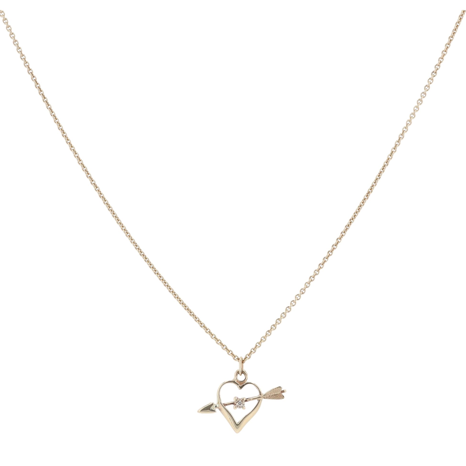 9ct Yellow Gold 0.01ct Diamond Arrow and Heart Pendant And Chain 18"