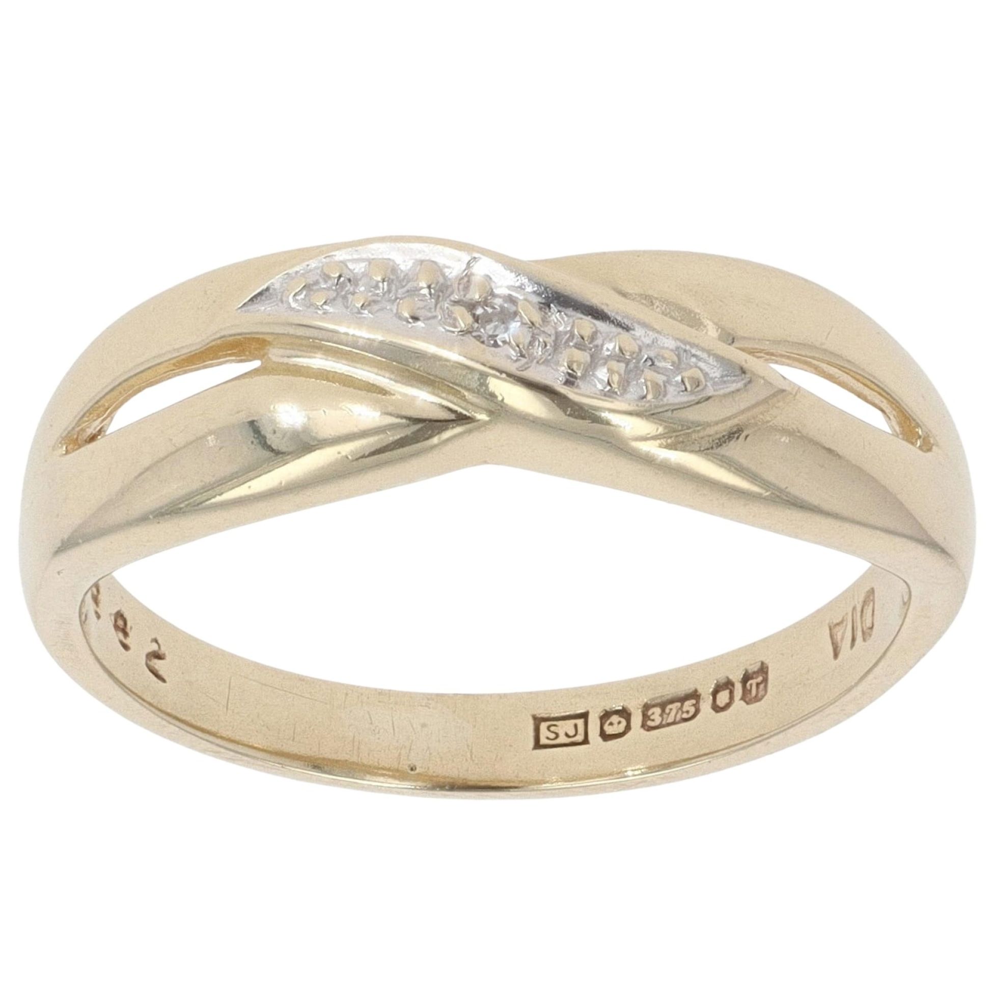 9ct Yellow Gold 0.01ct Diamond Crossover Ring