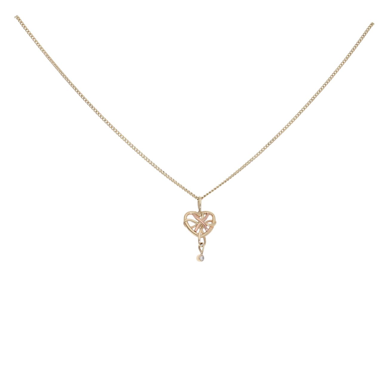9ct Yellow Gold 0.01ct Diamond Heart Pendant and Chain 18"