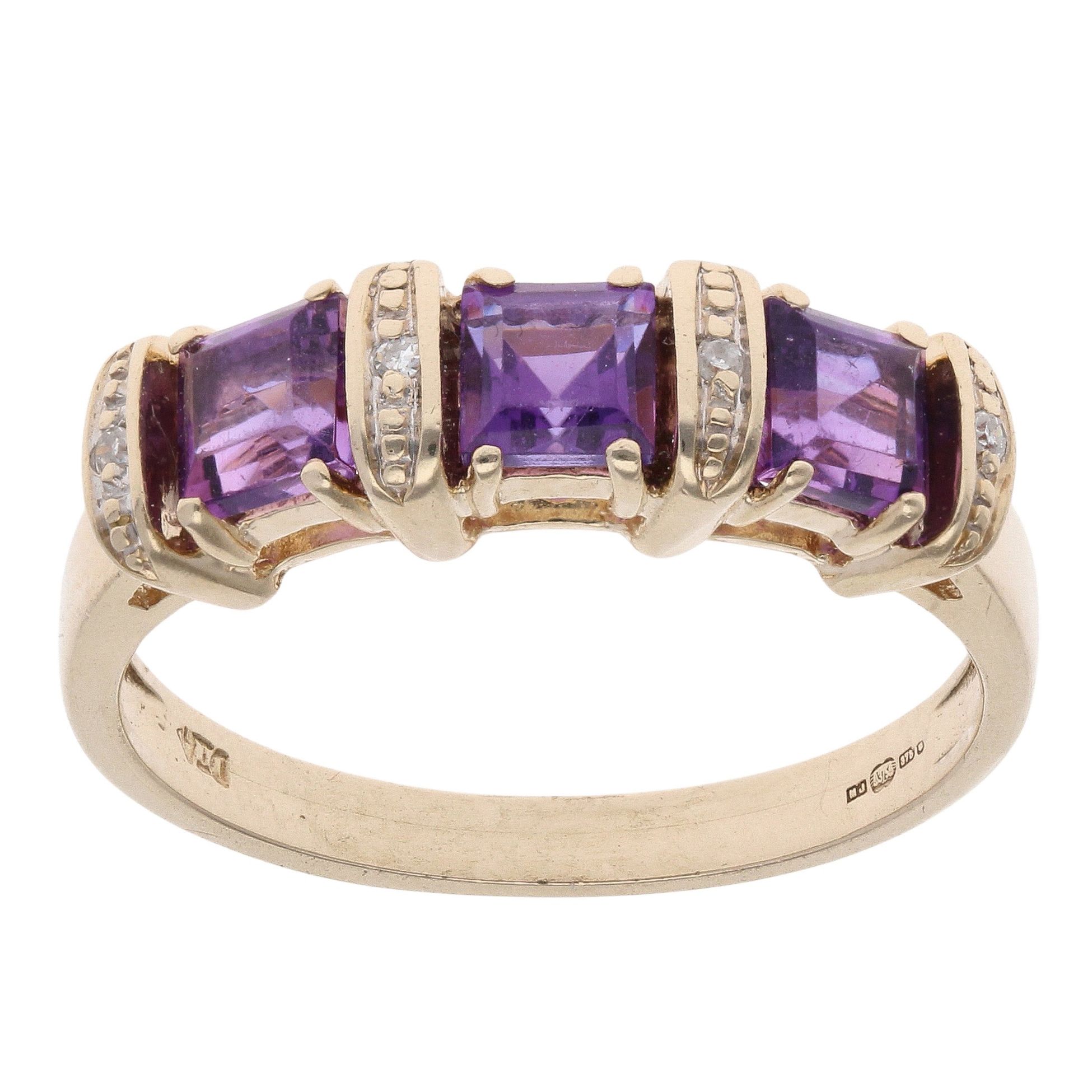 9ct Yellow Gold 0.02ct Diamond And Amethyst Ring