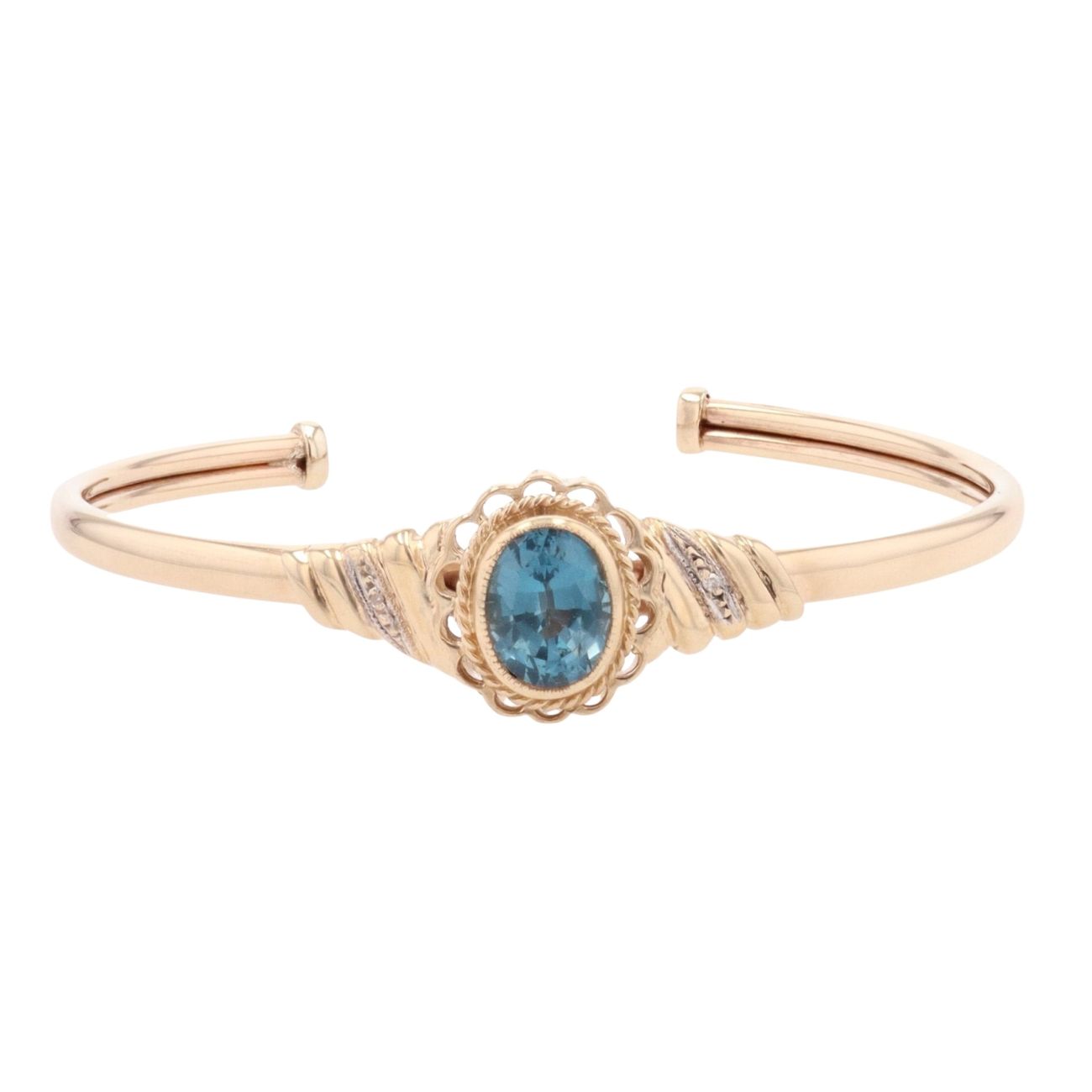 9ct Yellow Gold 0.02ct Diamond And Blue Topaz Bangle