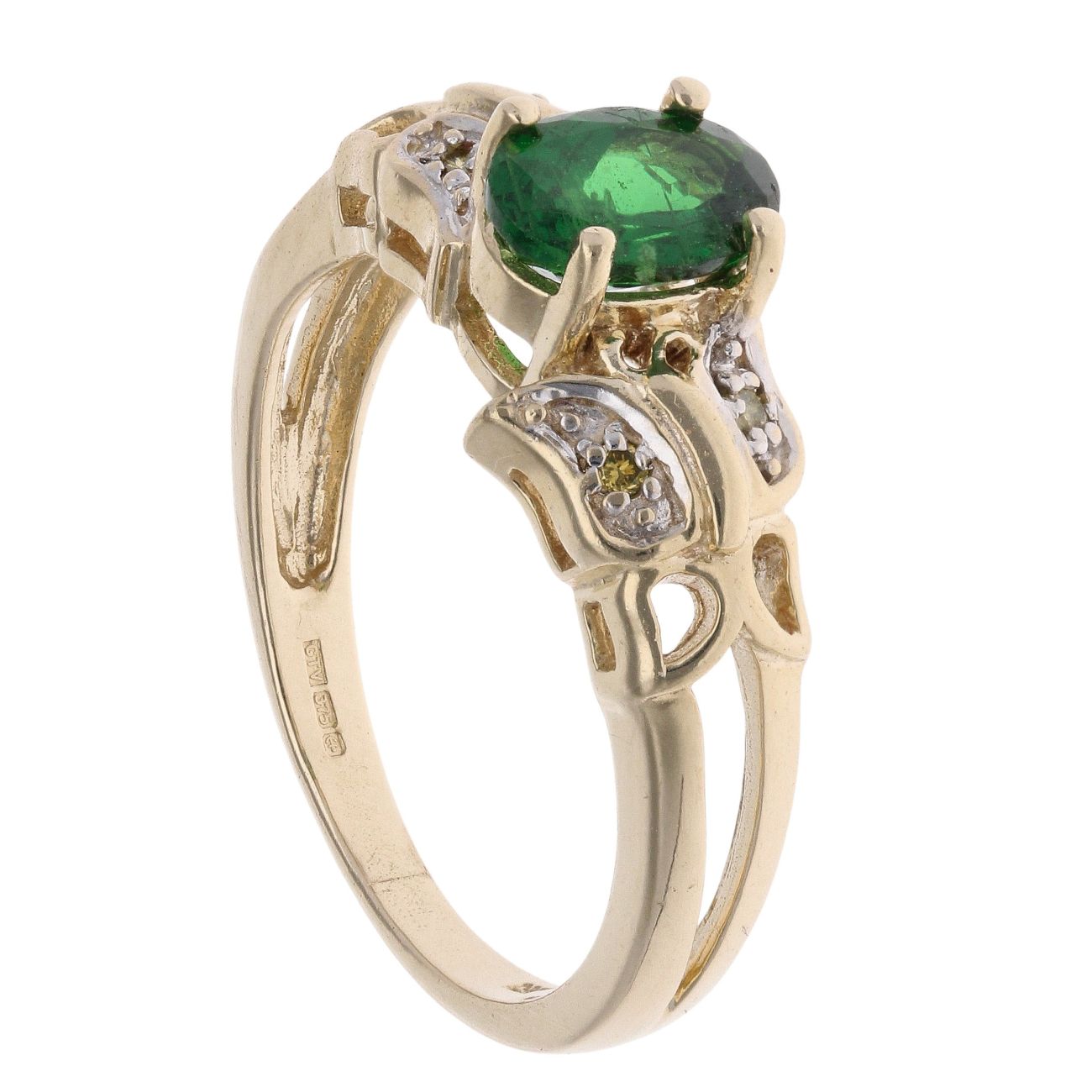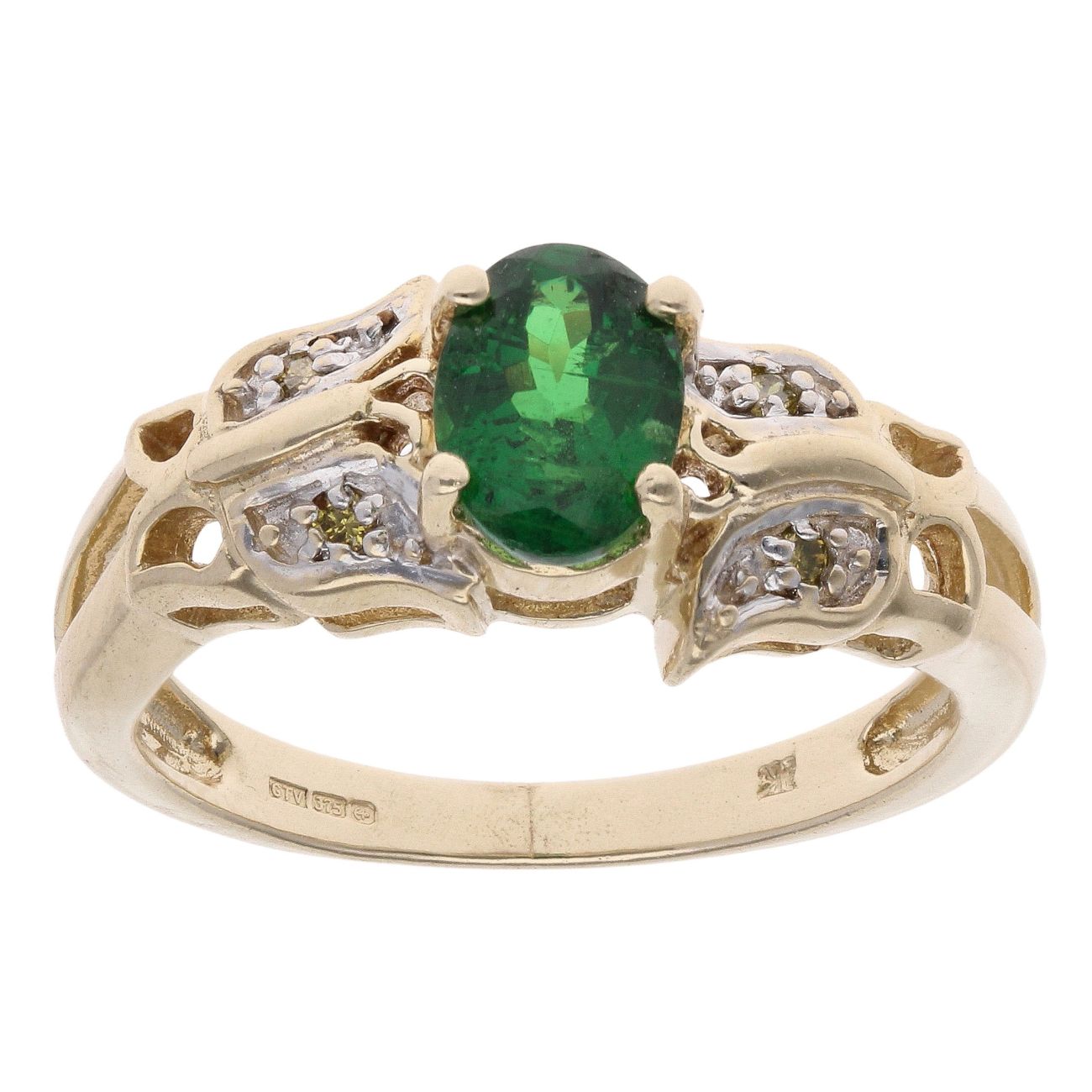 9ct Yellow Gold 0.02ct Diamond and Diopside Butterfly Ring