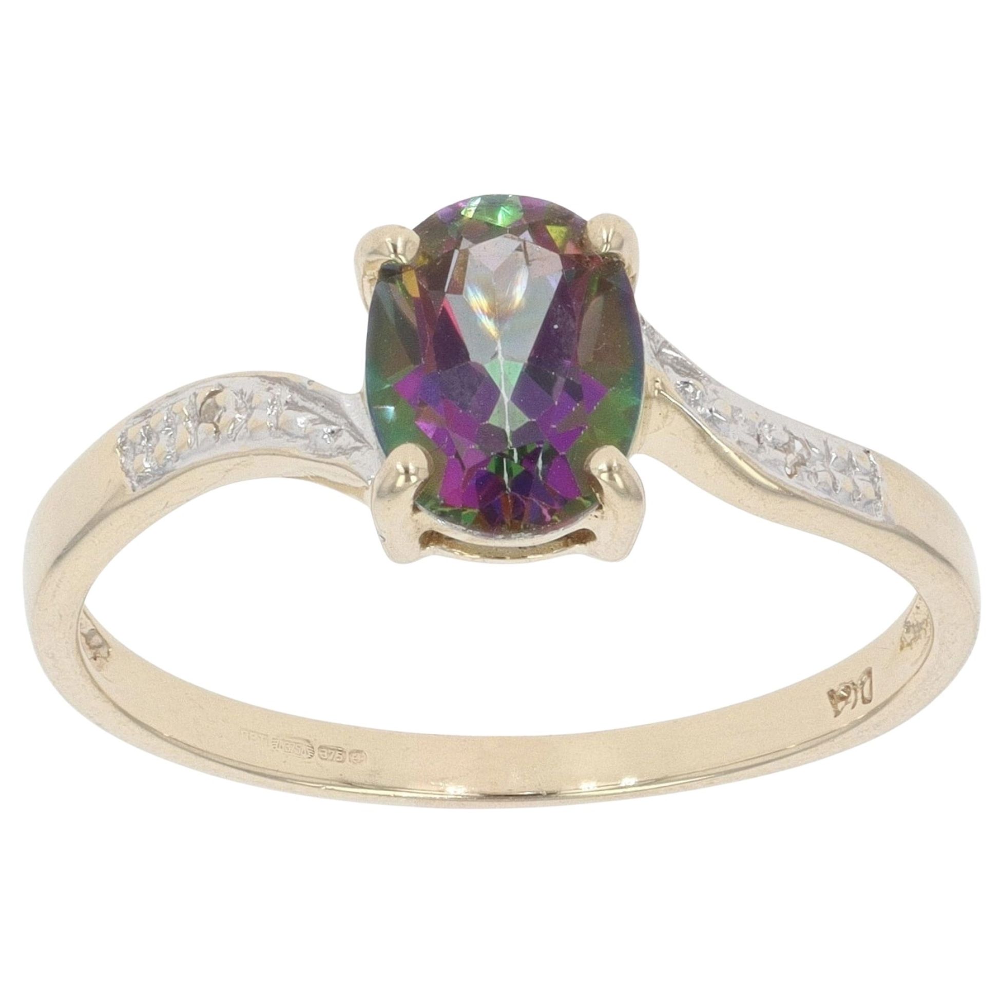 9ct Yellow Gold 0.02ct Diamond and Mystic Topaz Solitaire Ring