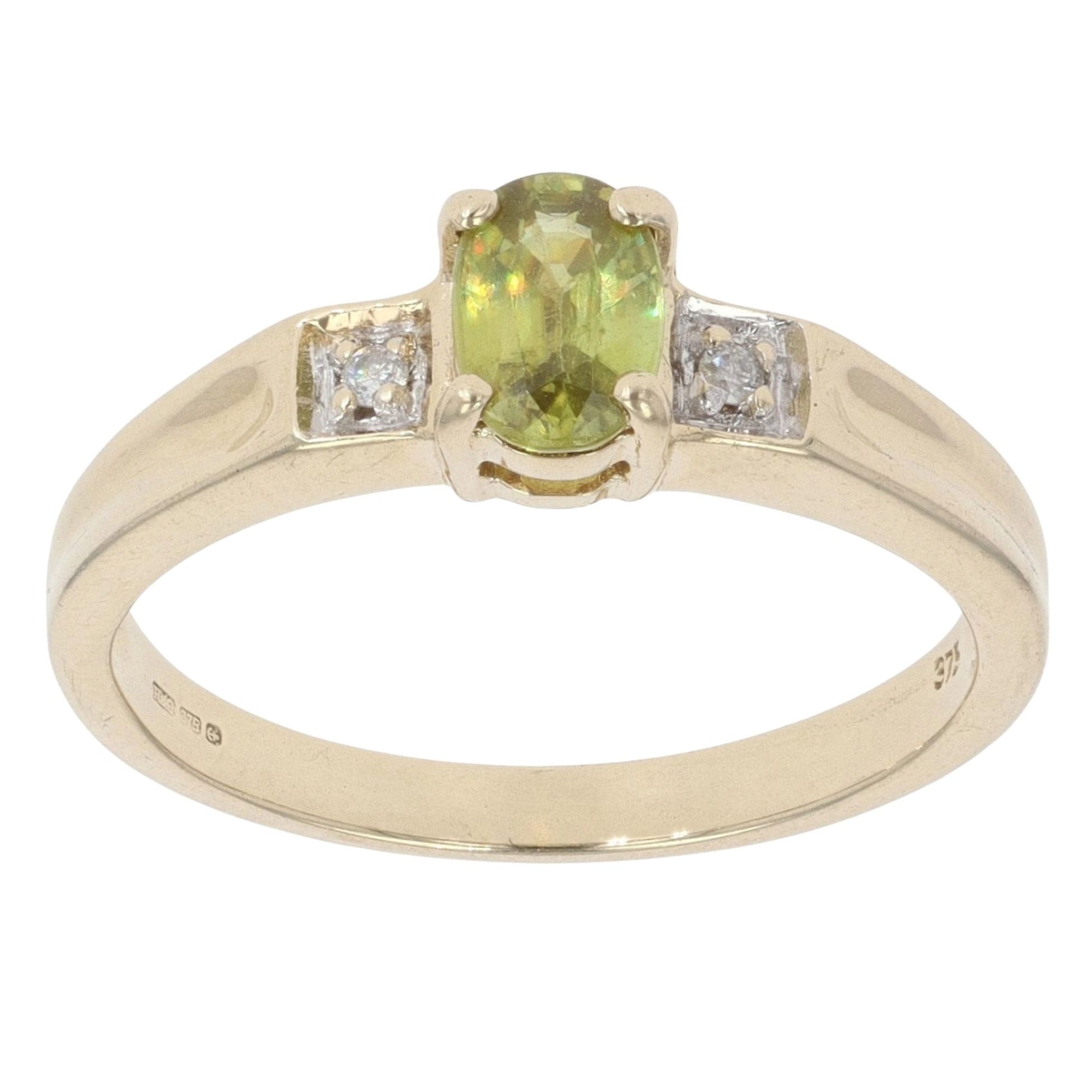 9ct Yellow Gold 0.02ct Diamond and Peridot Solitaire Ring