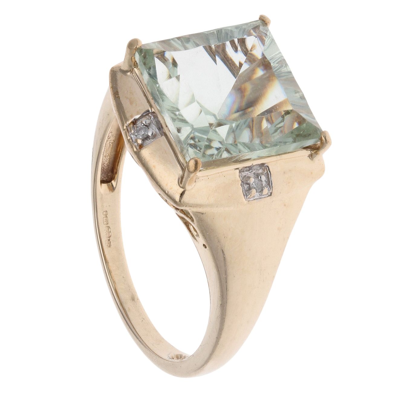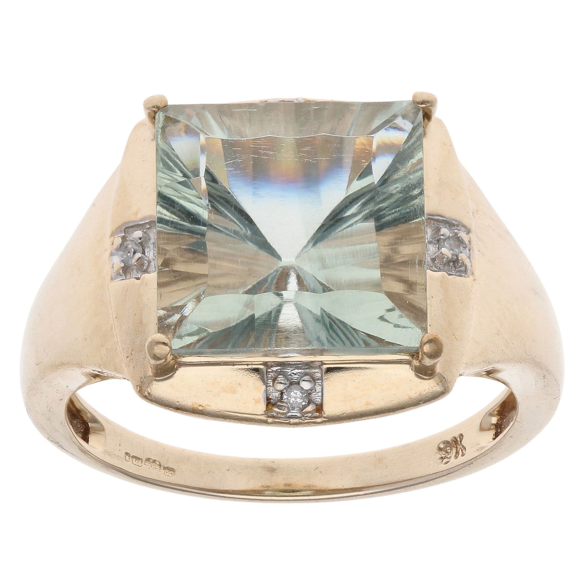 9ct Yellow Gold 0.02ct Diamond And Prasiolite Ring