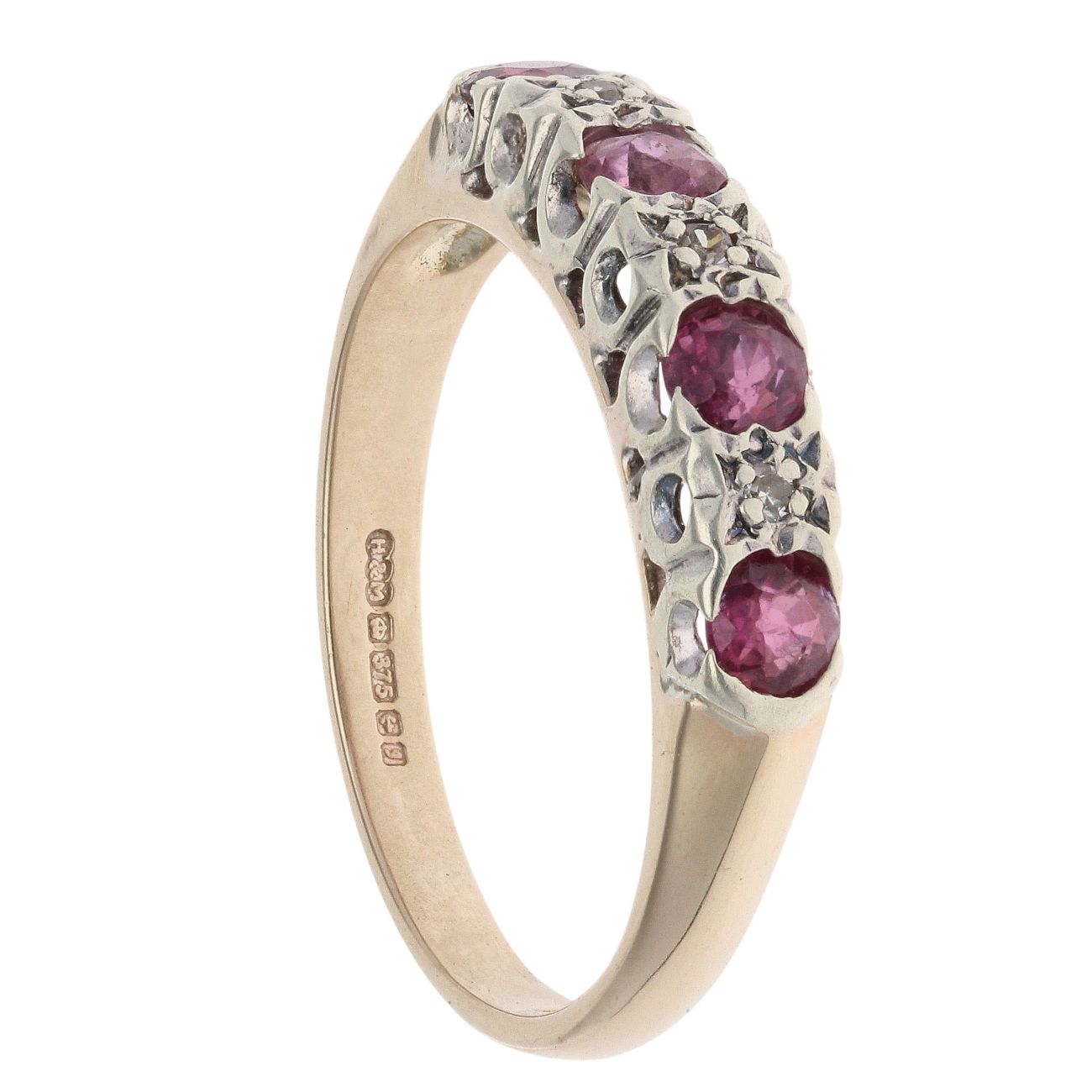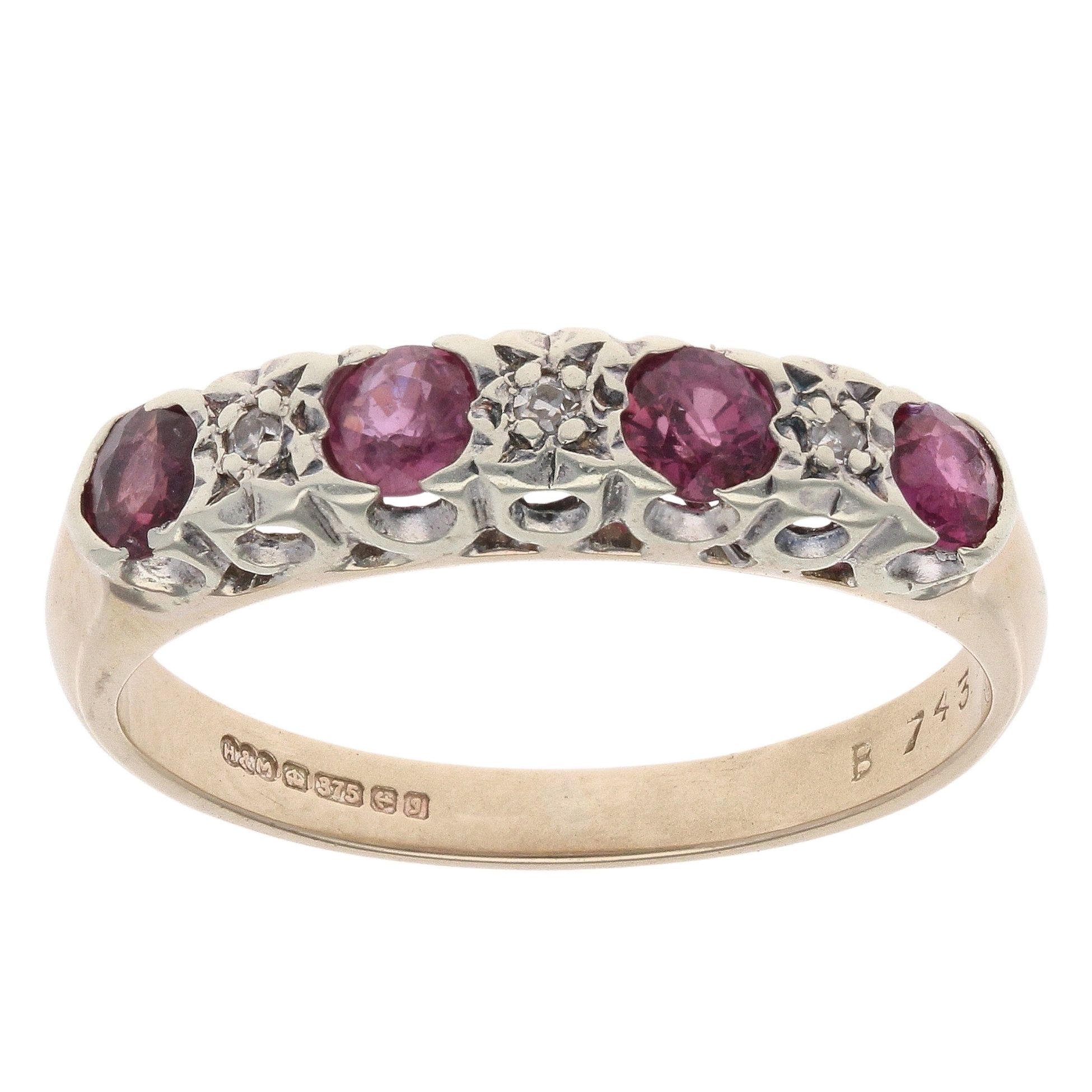 9ct Yellow Gold 0.02ct Diamond and Ruby Four Stone Ring