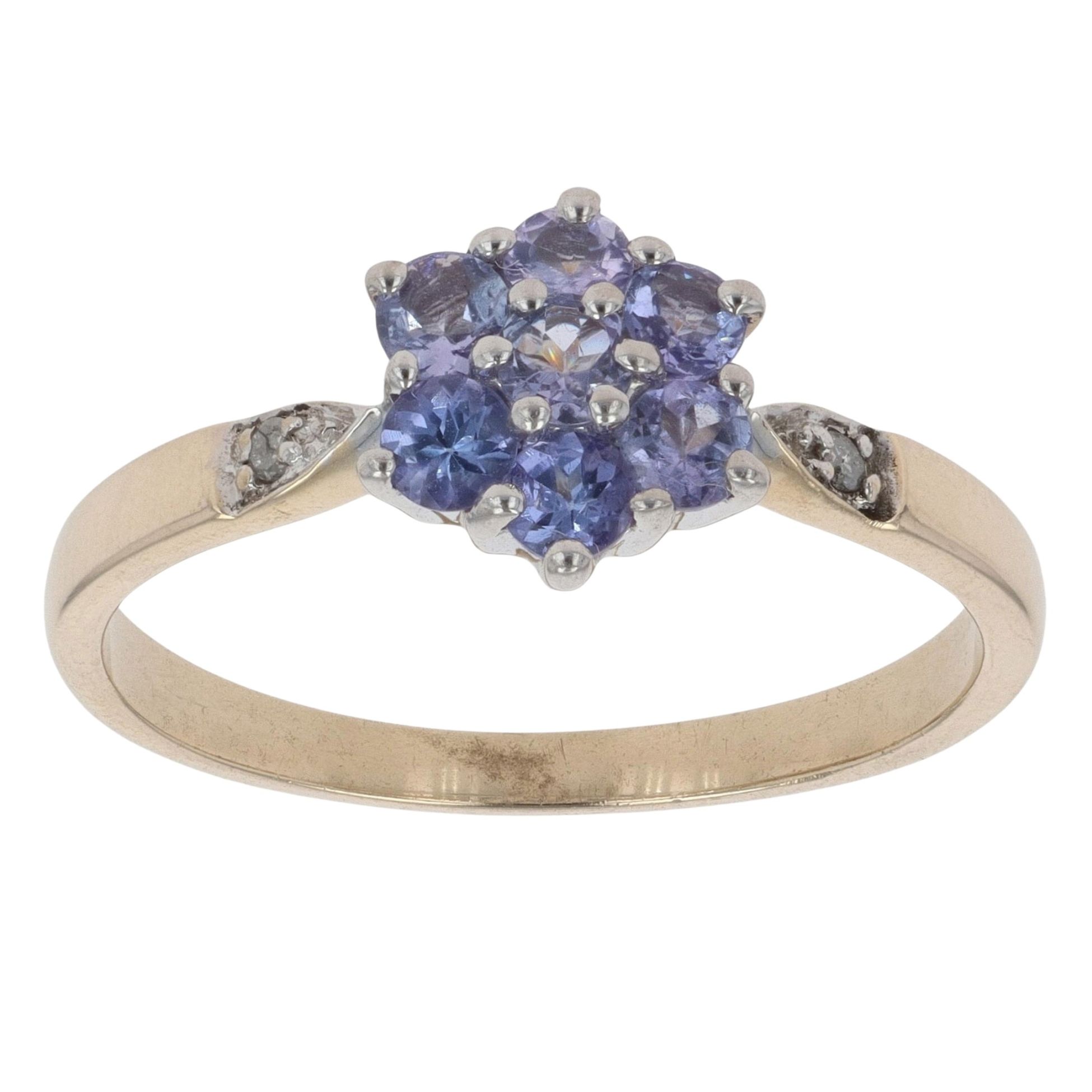 9ct Yellow Gold 0.02ct Diamond and Tanzanite Cluster Ring