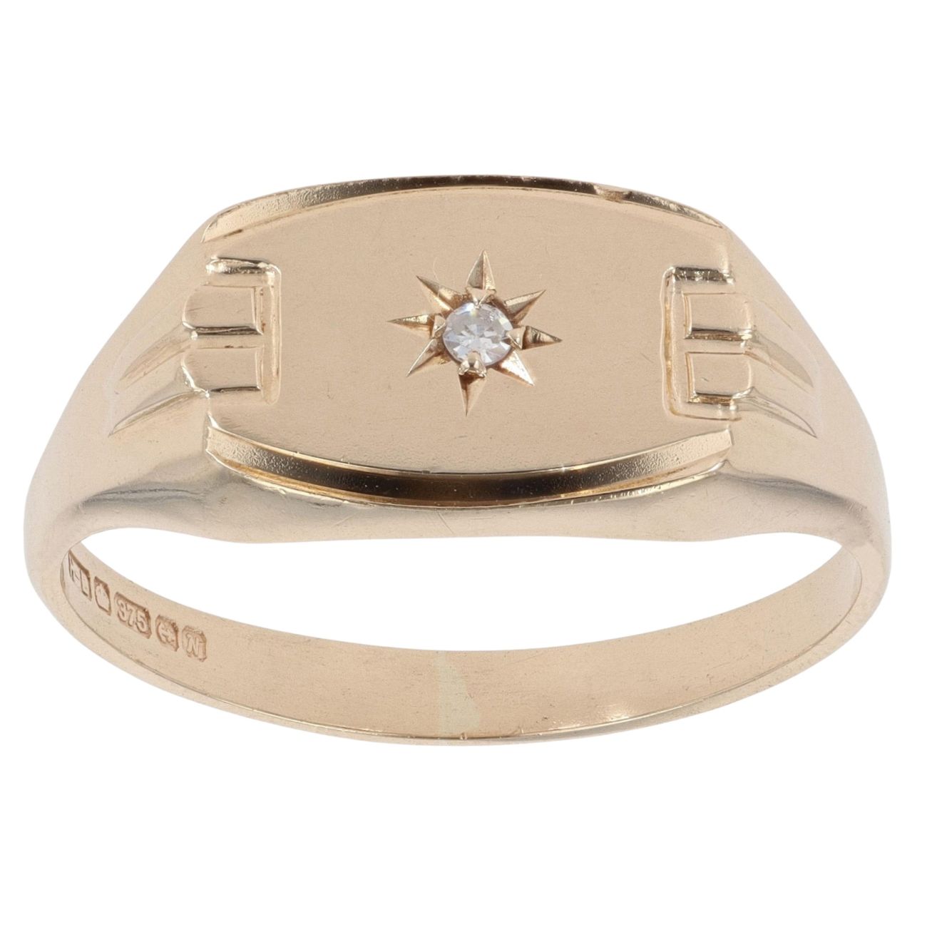 9ct Yellow Gold 0.02ct Diamond Signet Ring