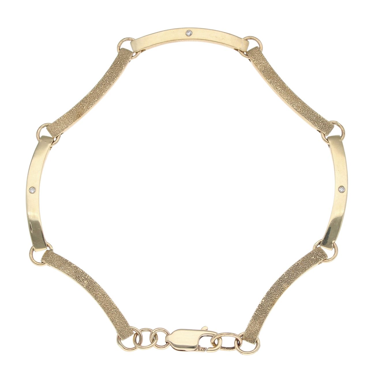 9ct Yellow Gold 0.03ct Diamond and Moondust Wave Bracelet 7.5"