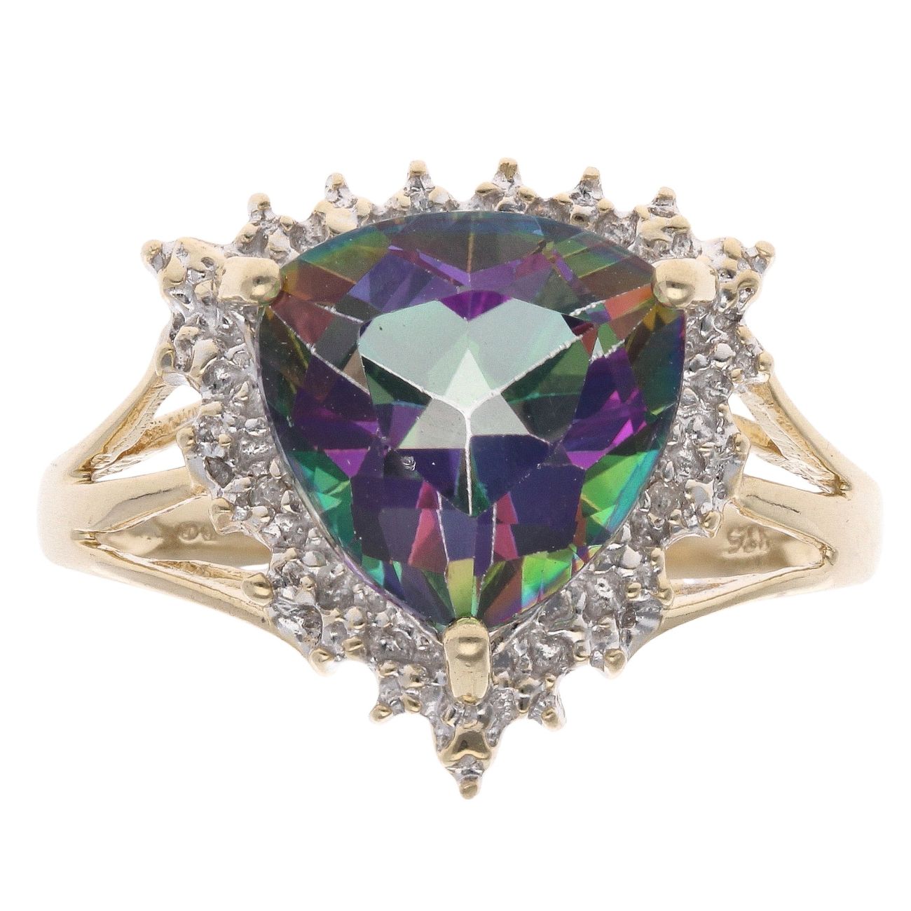 9ct Yellow Gold 0.03ct Diamond And Mystic Topaz Cluster Ring