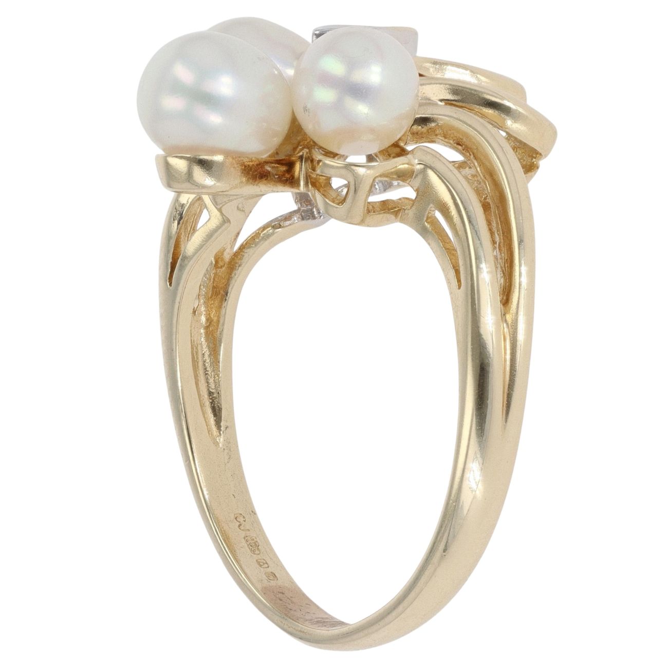 9ct Yellow Gold 0.03ct Diamond and Pearl Fancy Ring