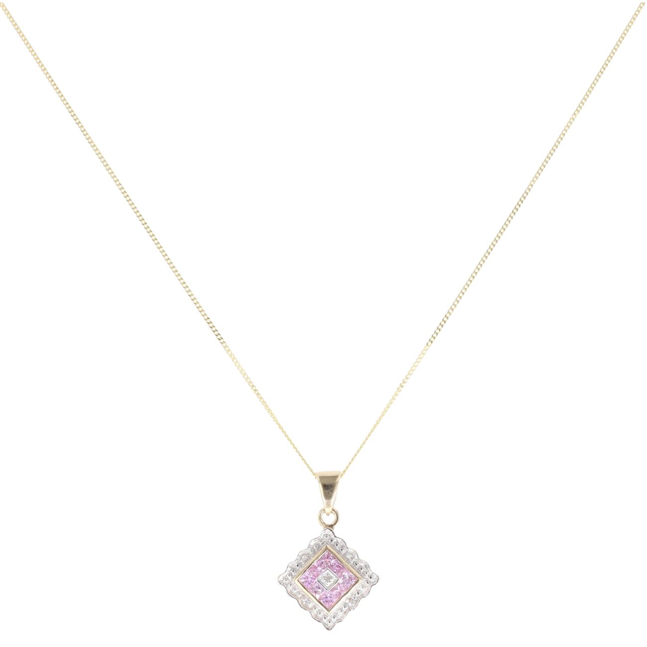 9ct Yellow Gold 0.03ct Diamond And Pink Sapphire Cluster Pendant And Chain 18"