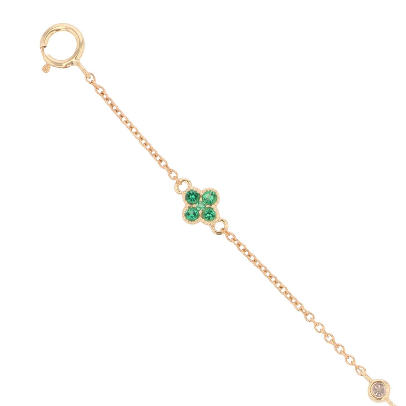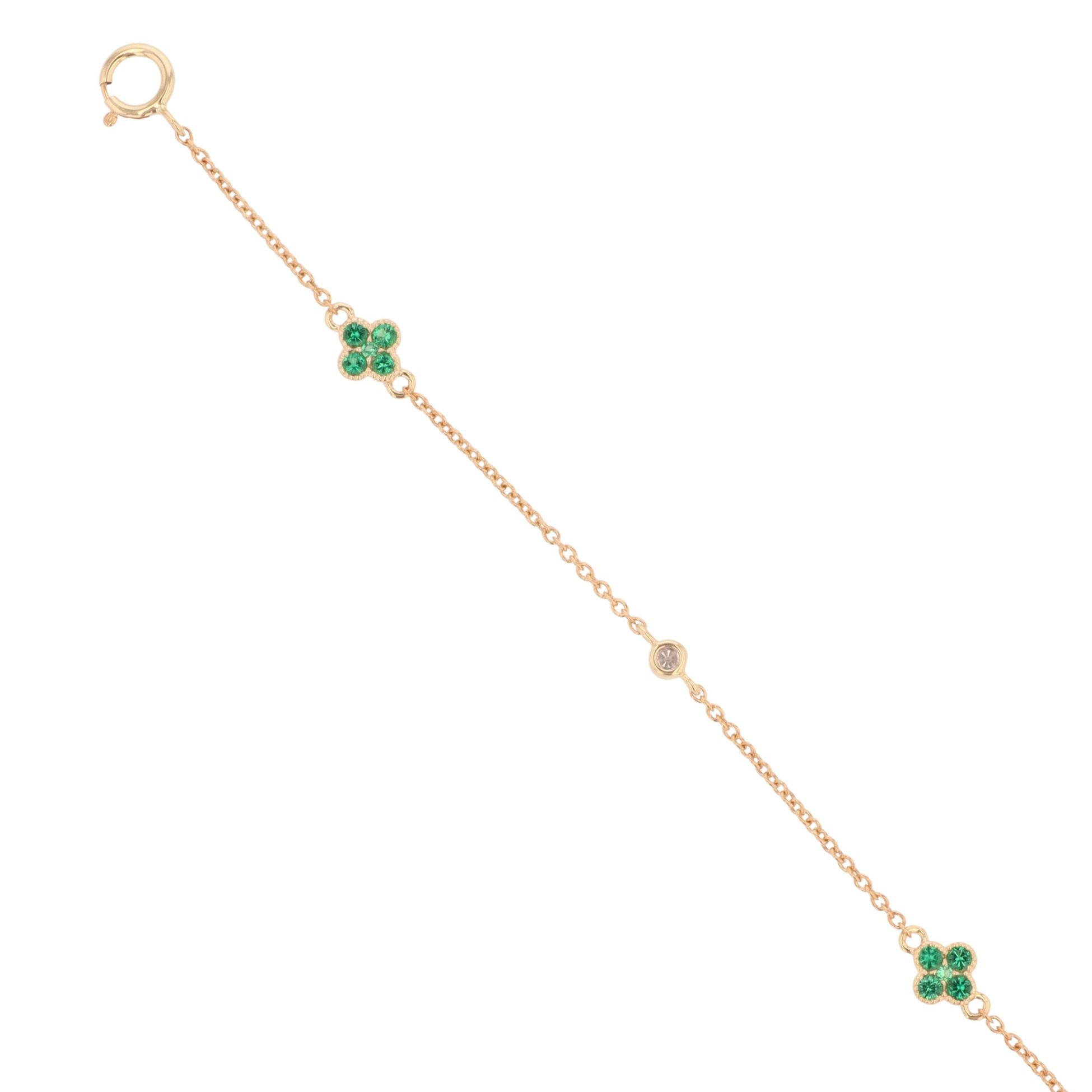 9ct Yellow Gold 0.04ct Diamond And Created Emerald Bracelet 7"