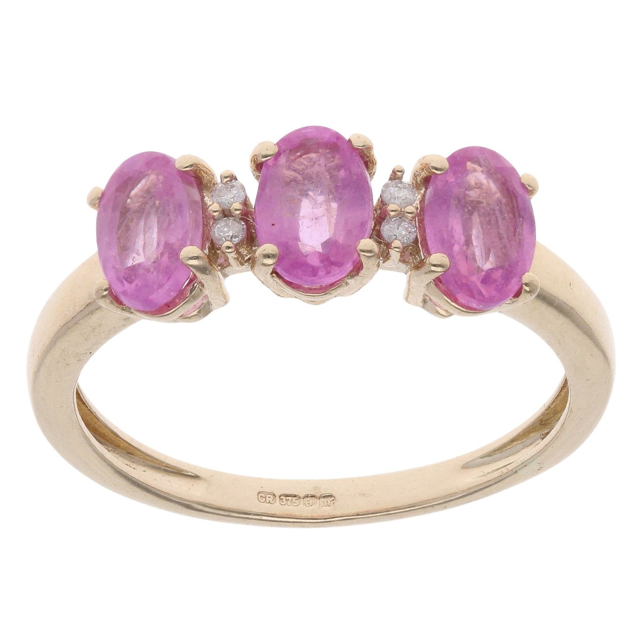 9ct Yellow Gold 0.04ct Diamond And Pink Topaz Three Stone Ring