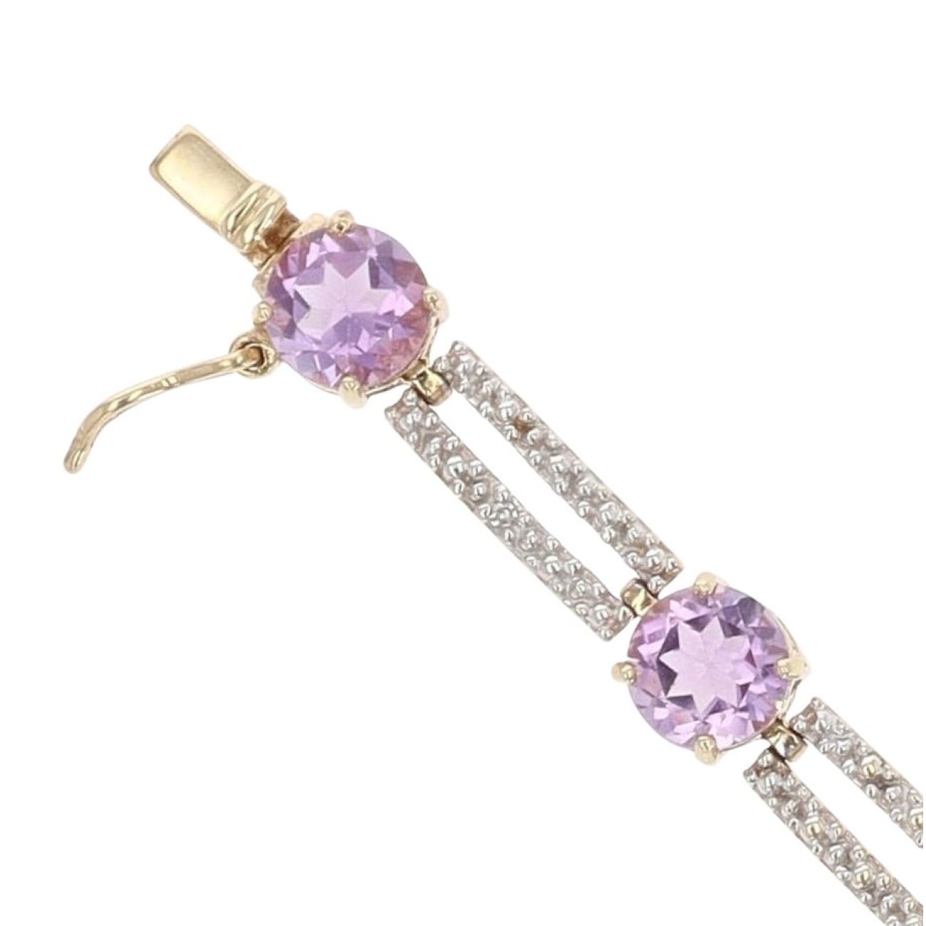 9ct Yellow Gold 0.05ct Diamond And Amethyst Bracelet 7"