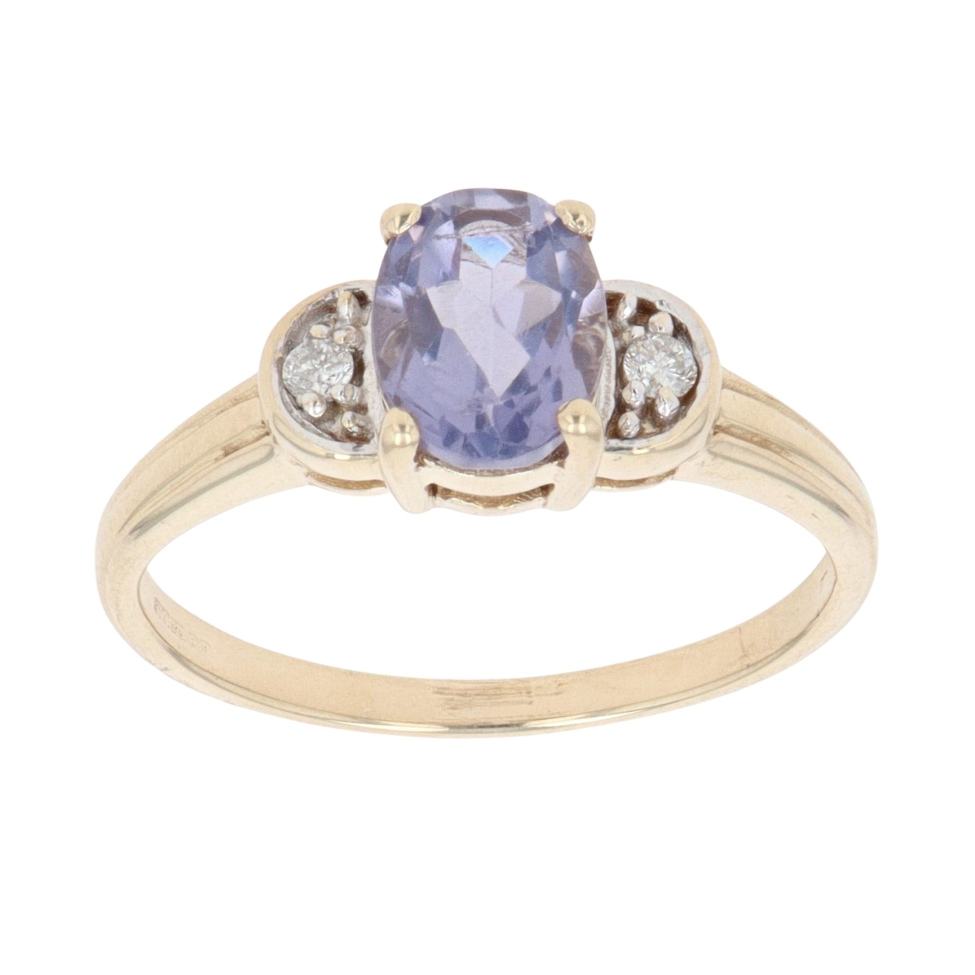 9ct Yellow Gold 0.05ct Diamond And Amethyst Dress Ring