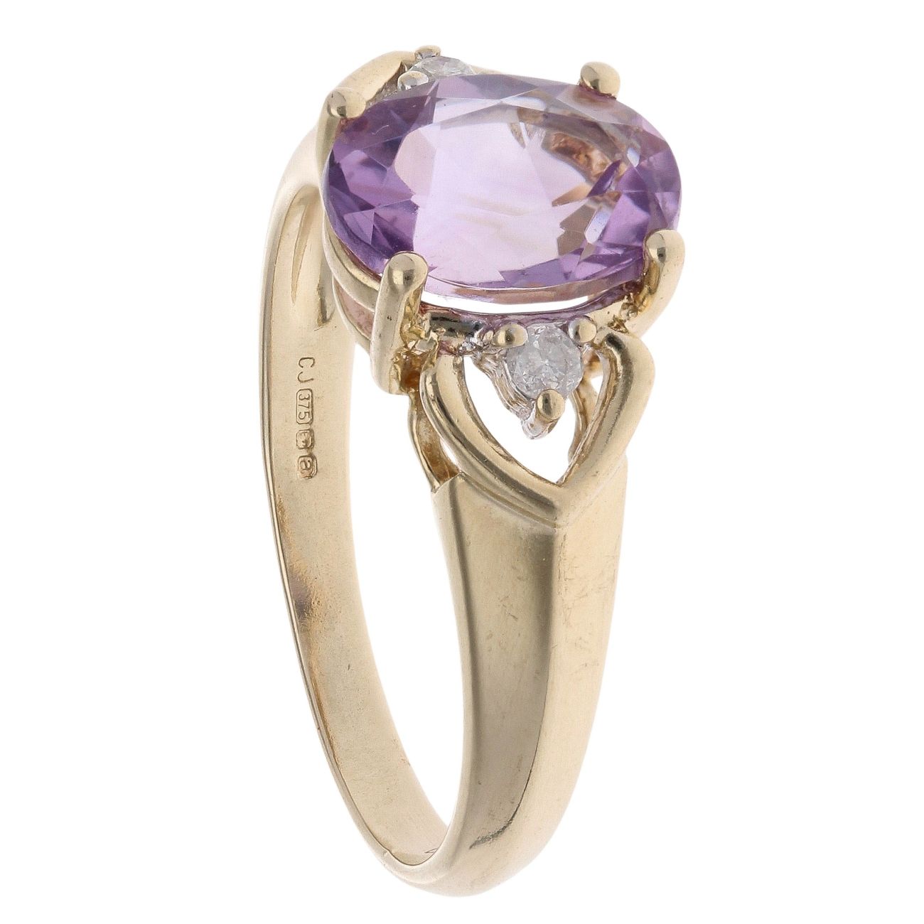 9ct Yellow Gold 0.05ct Diamond And Amethyst Ring