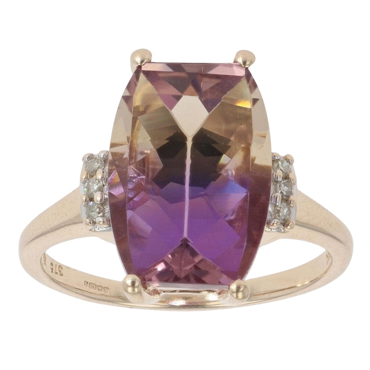 9ct Yellow Gold 0.05ct Diamond and Ametrine Solitaire Ring