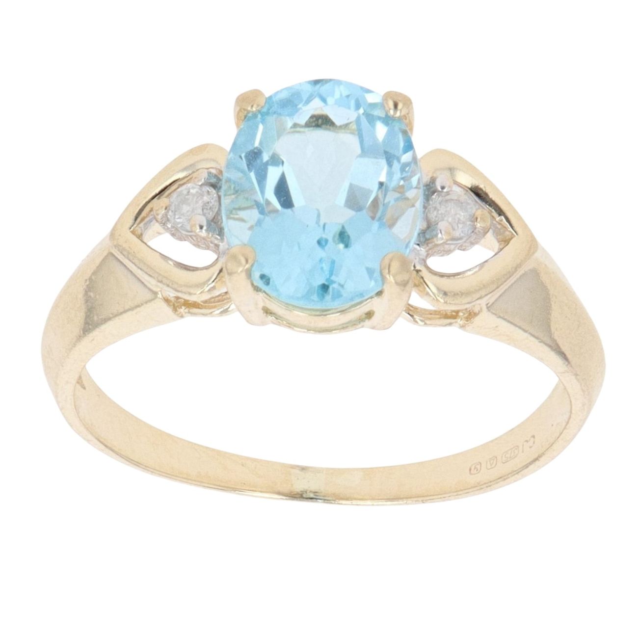 9ct Yellow Gold 0.05ct Diamond And Blue Gemstone Dress Ring