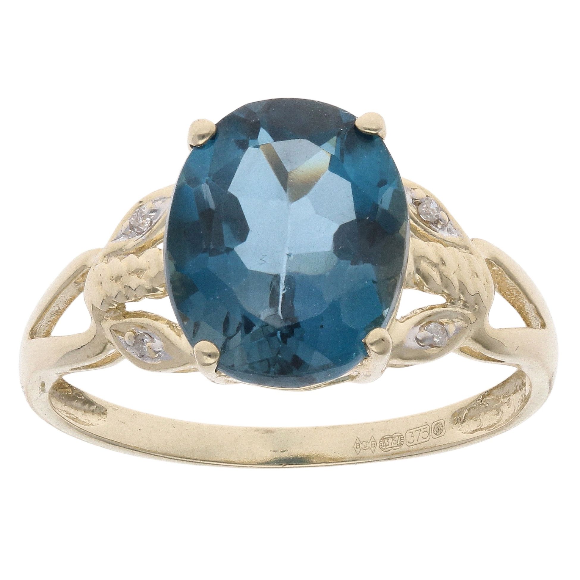 9ct Yellow Gold 0.05ct Diamond and Blue Topaz Solitaire Ring