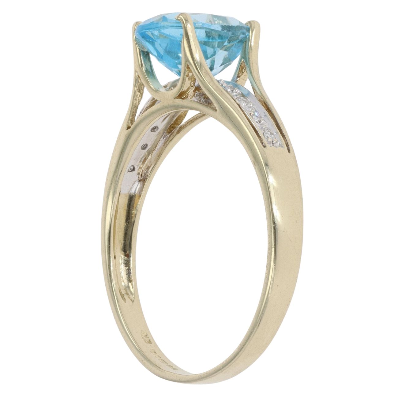 9ct Yellow Gold 0.05ct Diamond and Blue Topaz Solitaire Ring
